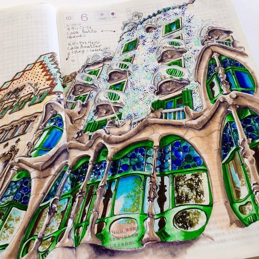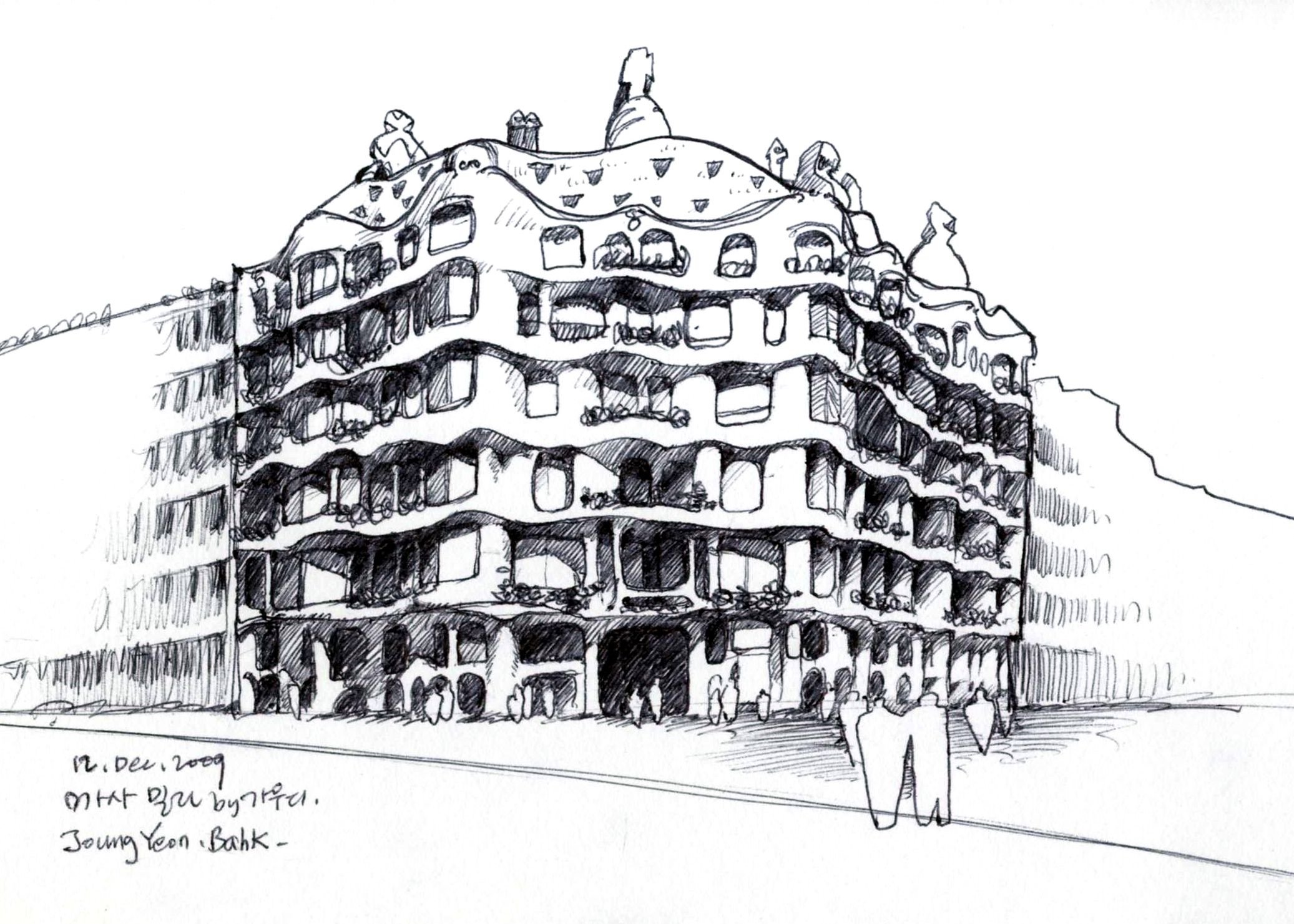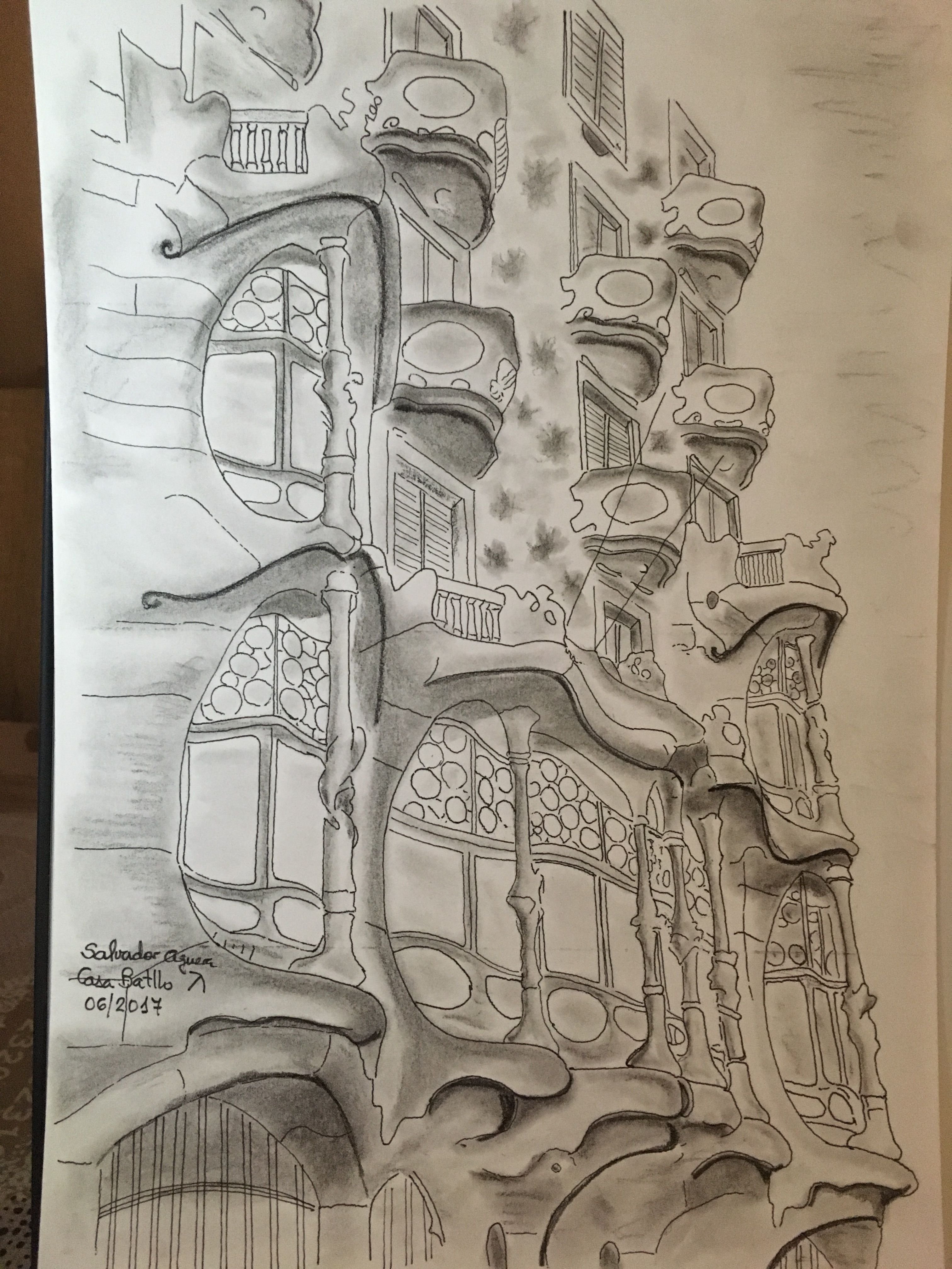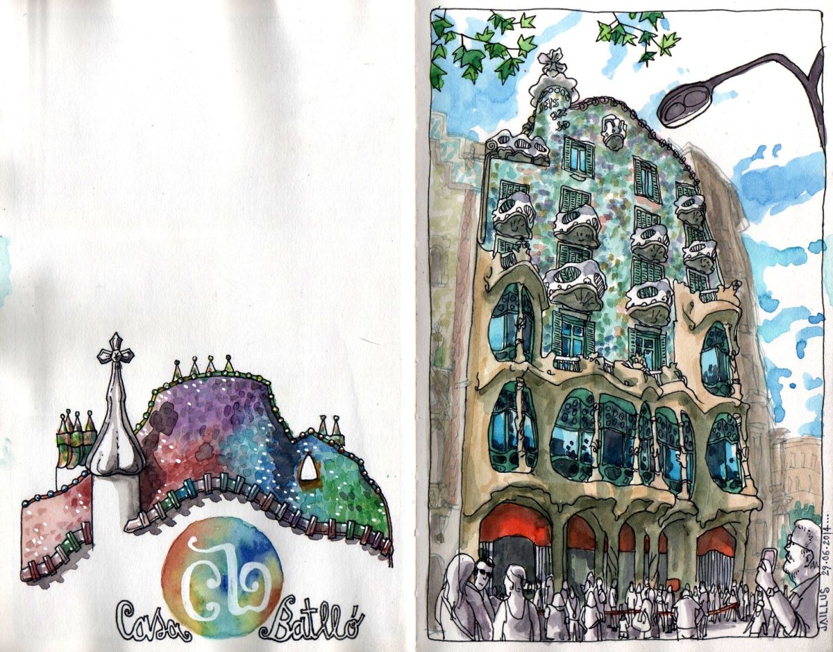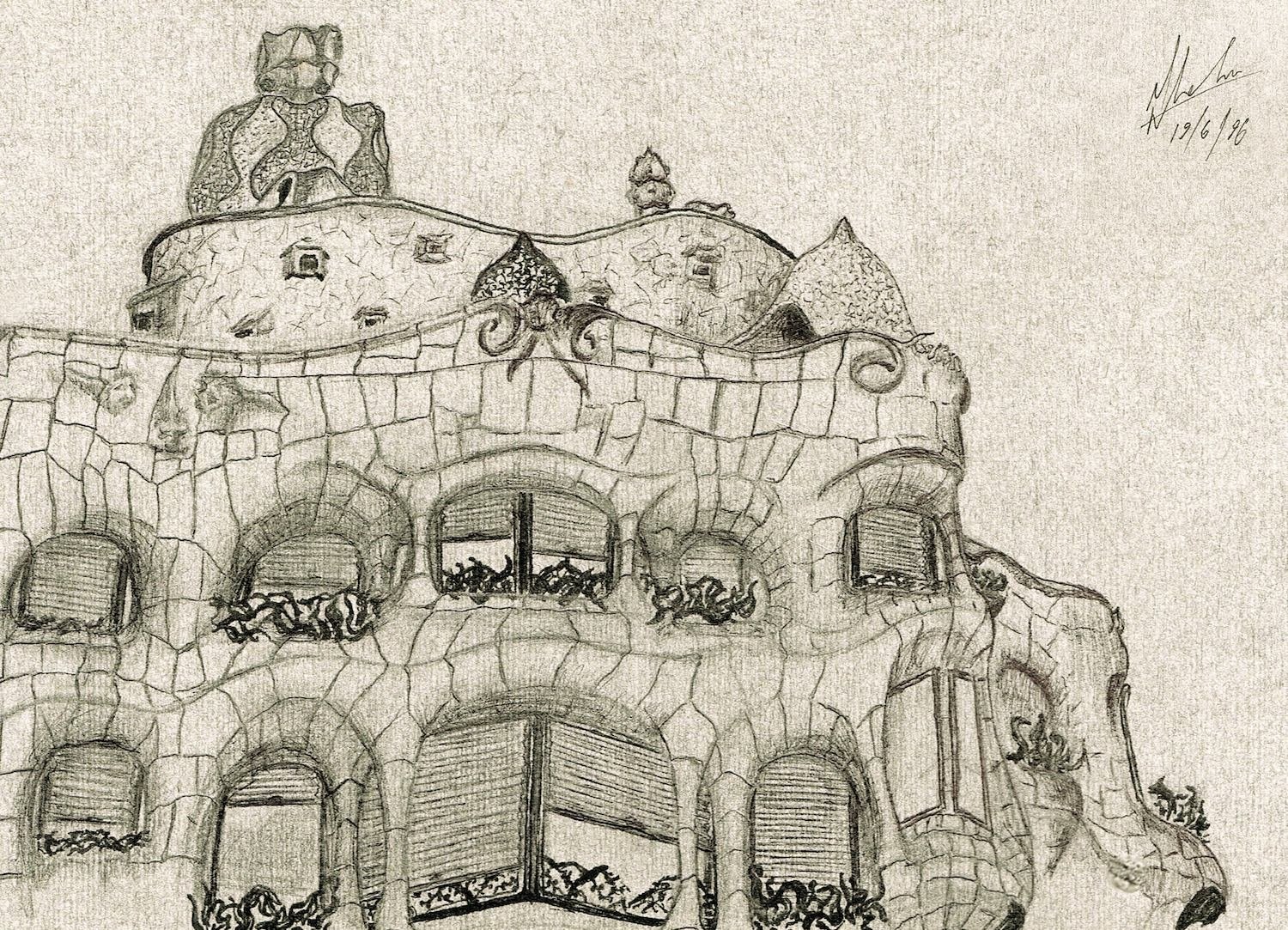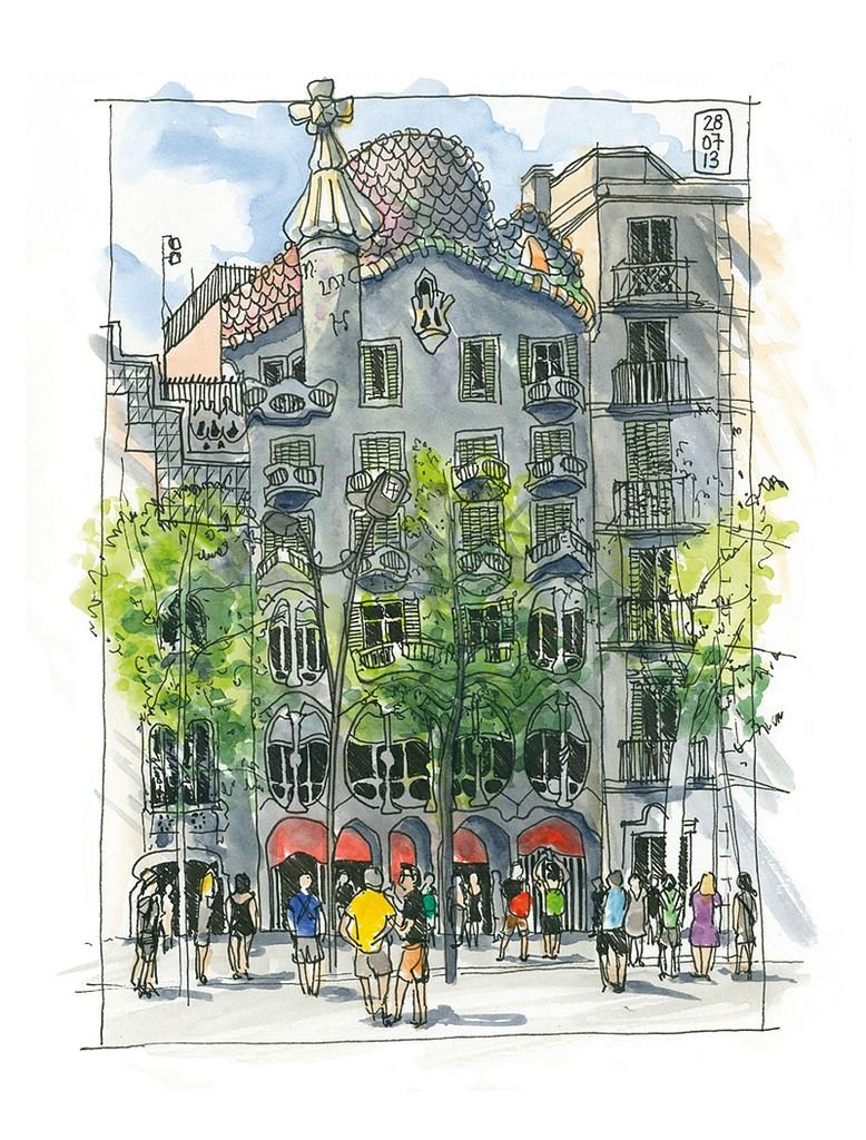 Дом Батло в Барселоне, а. Гауди.1904-1906г зарисовки