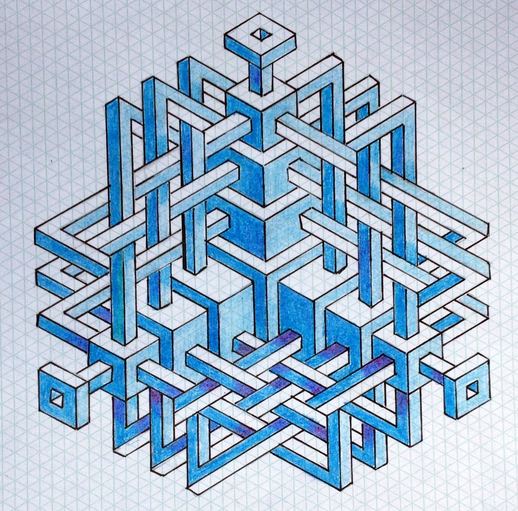 Маленькие 3д рисунки по клеточкам