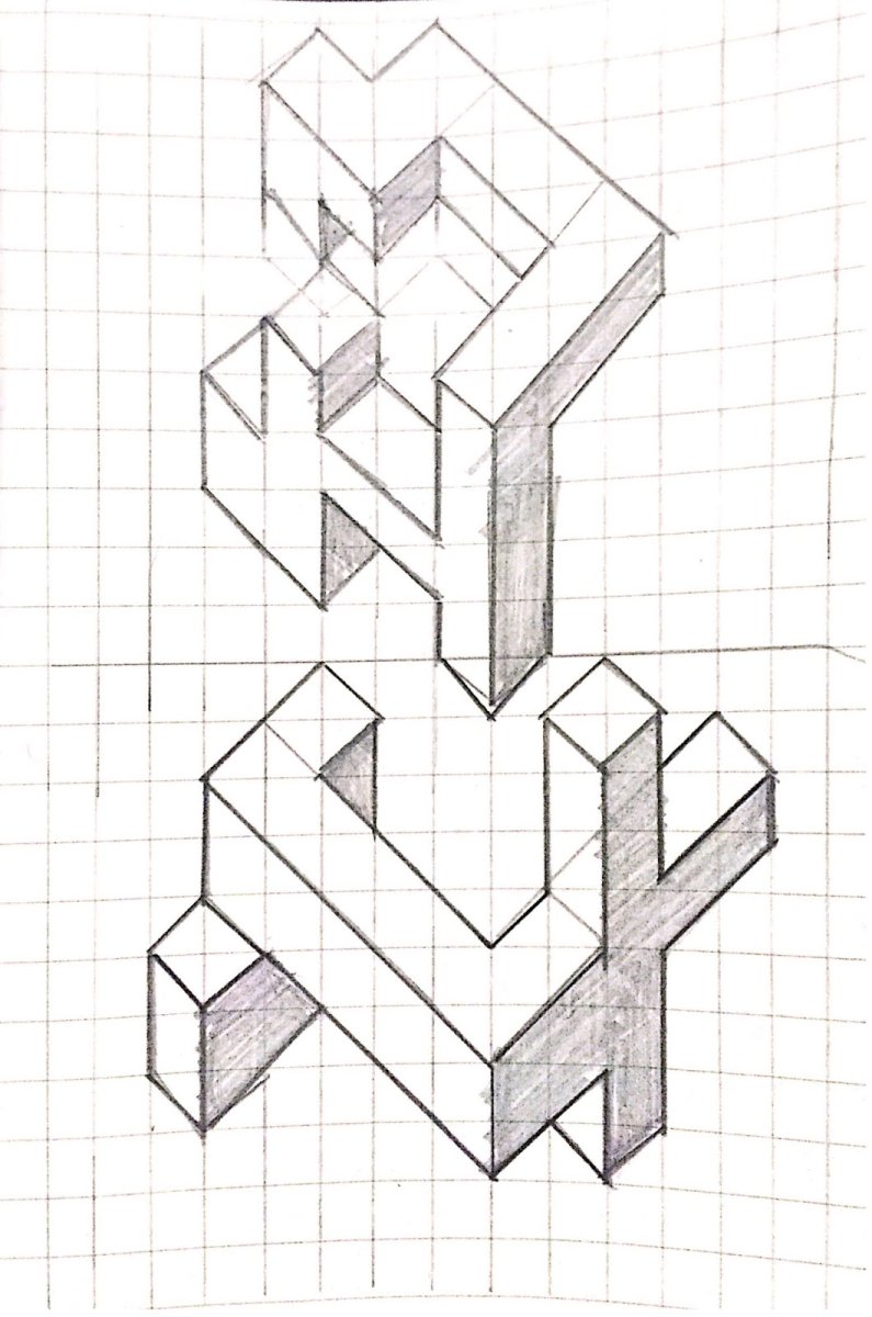 Объемные цифры карандашом