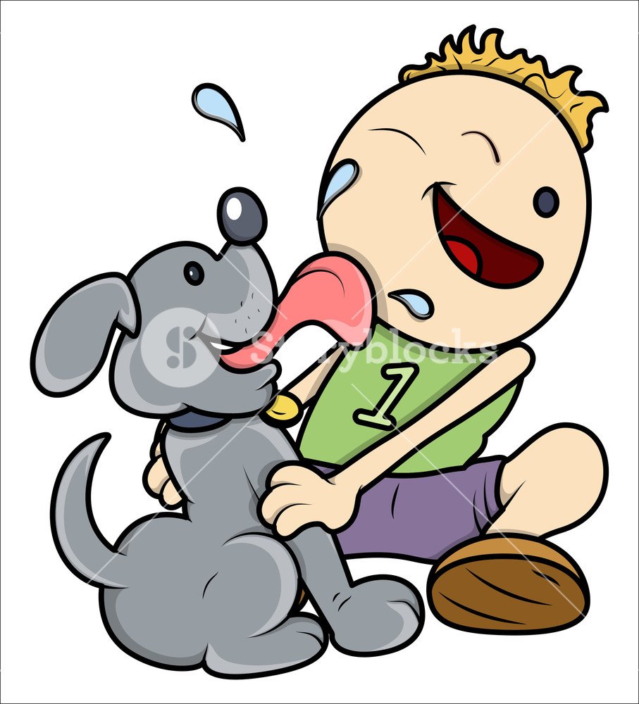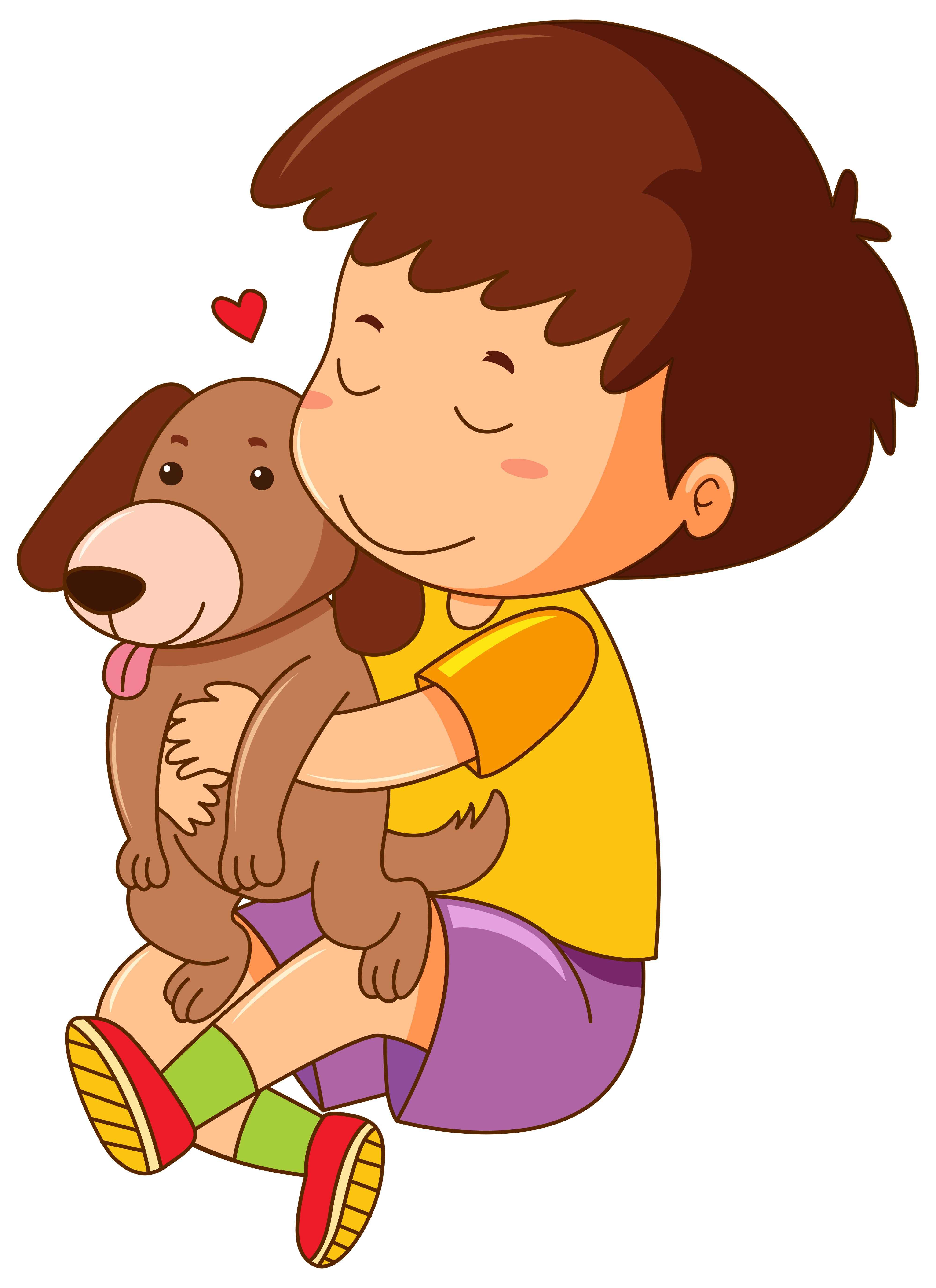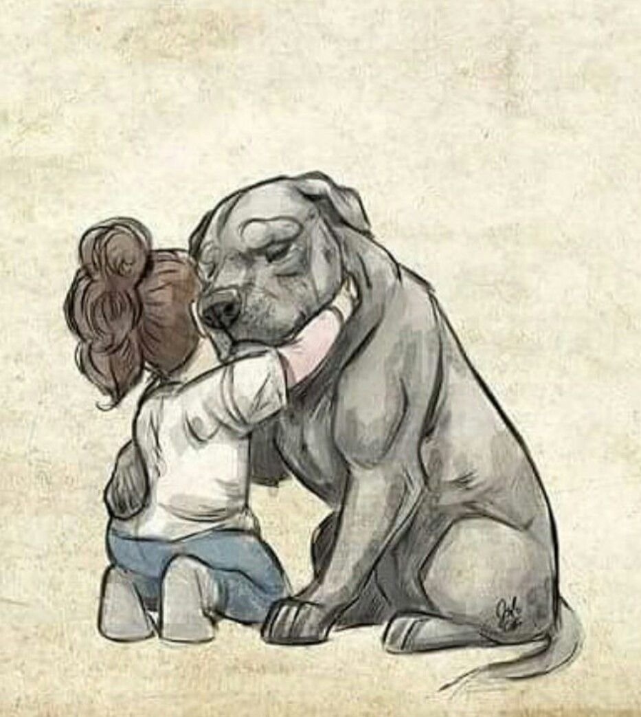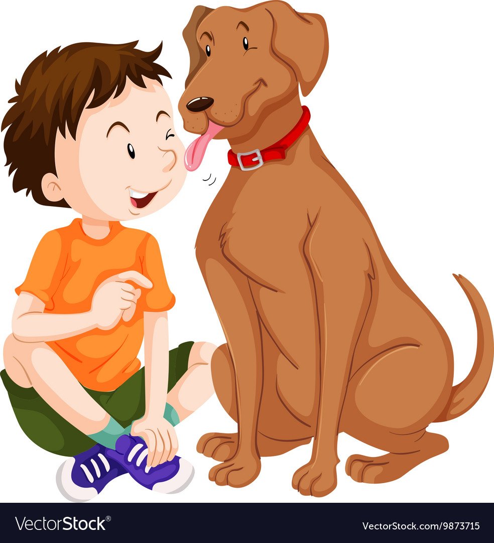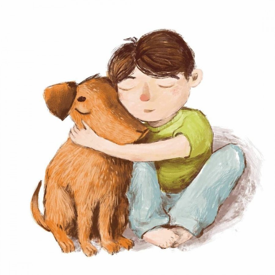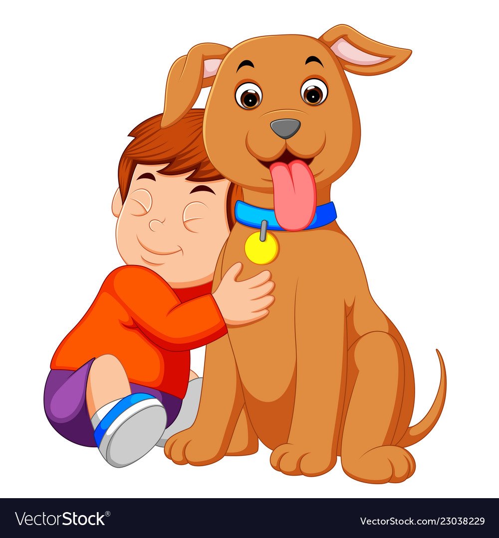 Мальчик обнимает собаку мультяшные