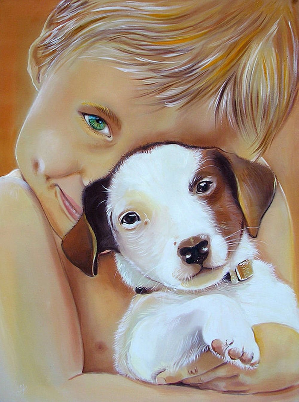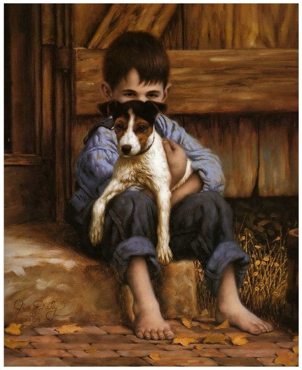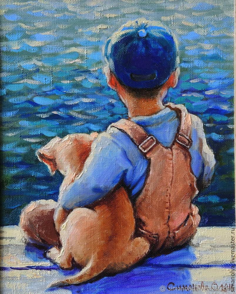Живопись мальчик со щенком