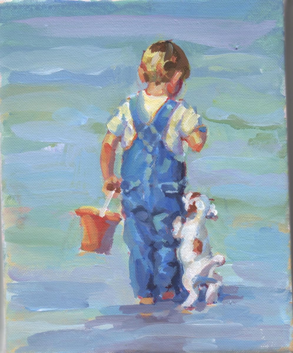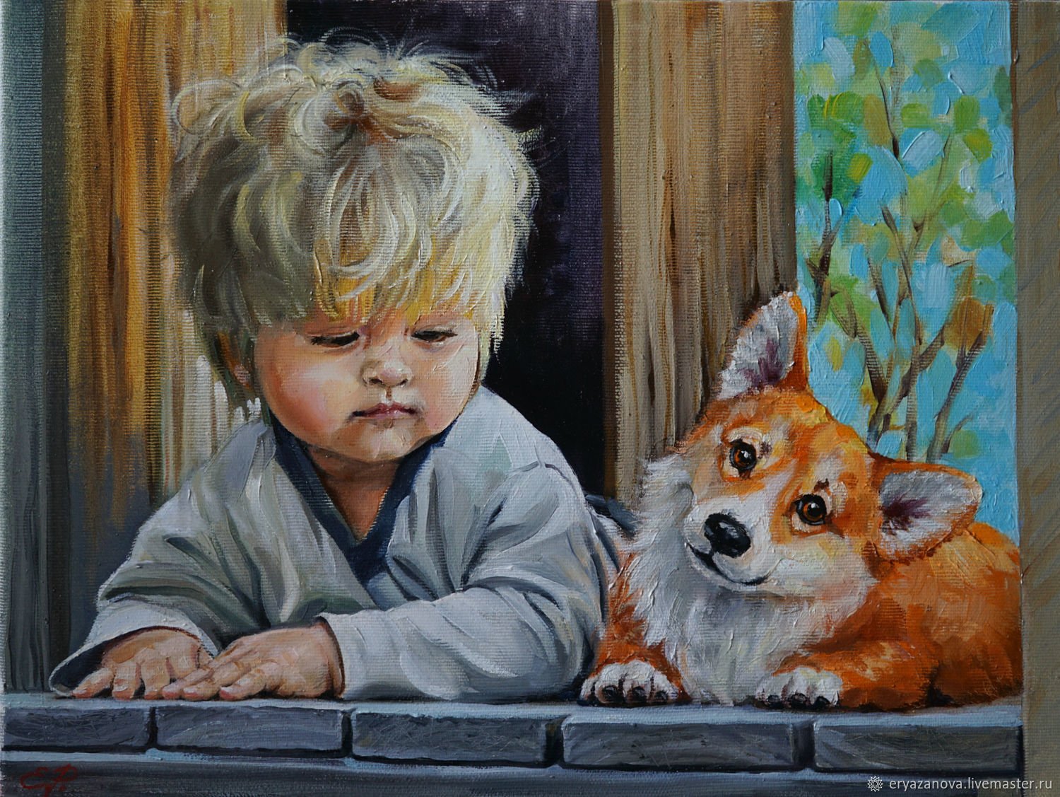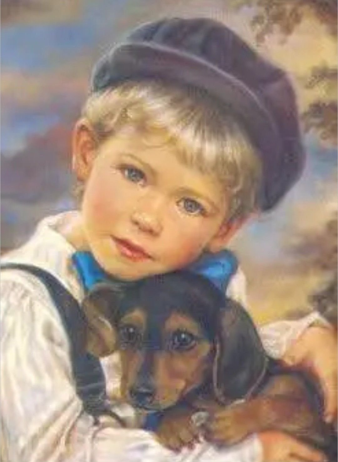 Живопись мальчик со щенком