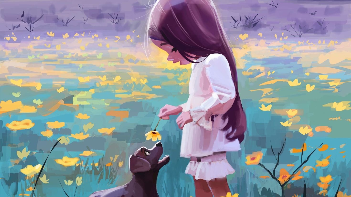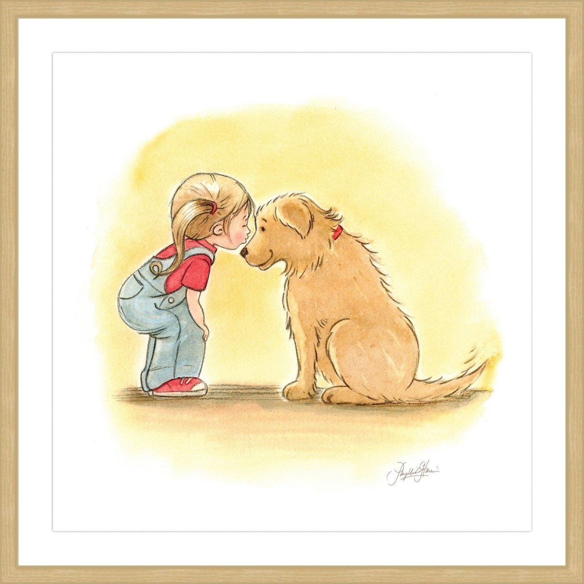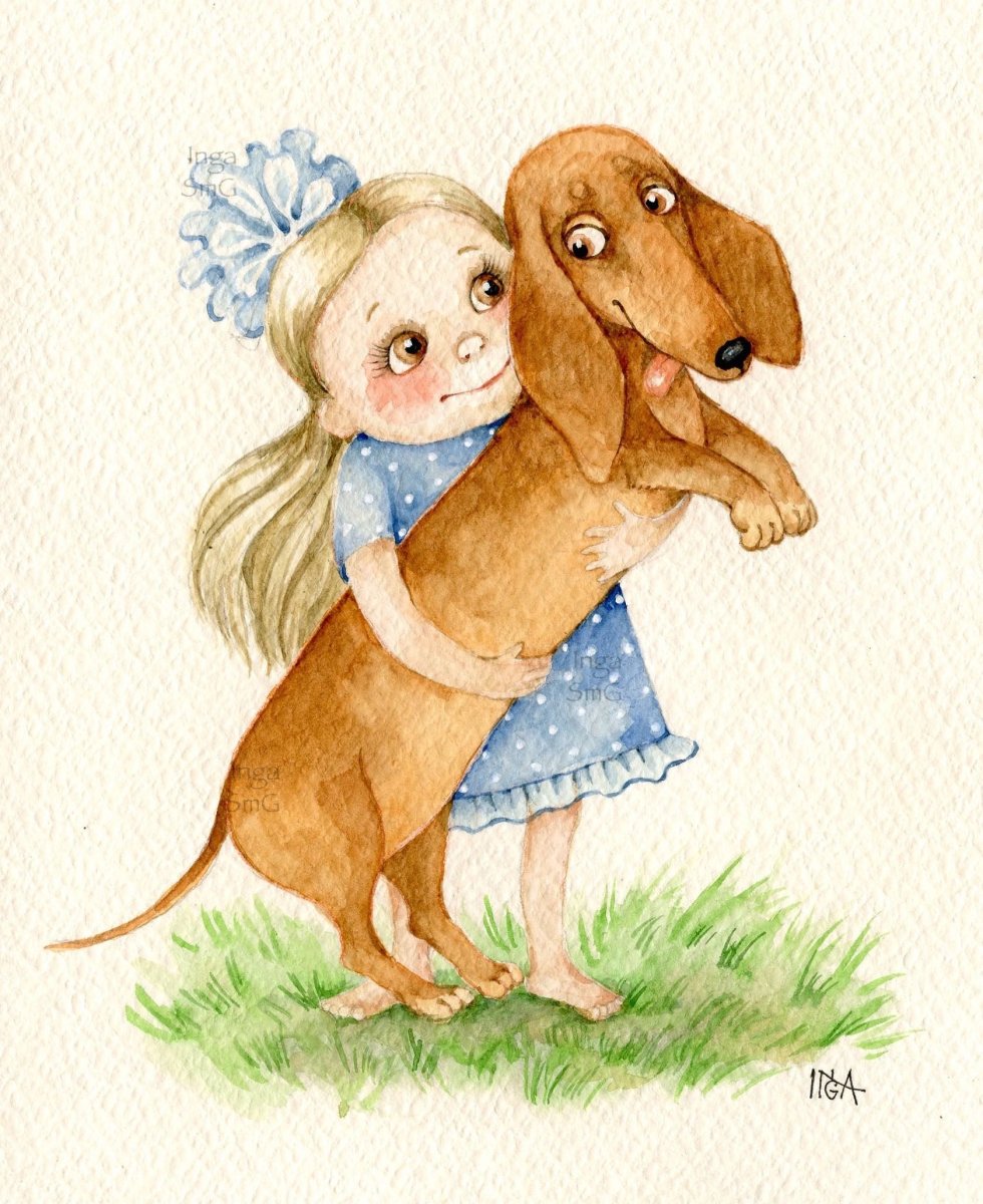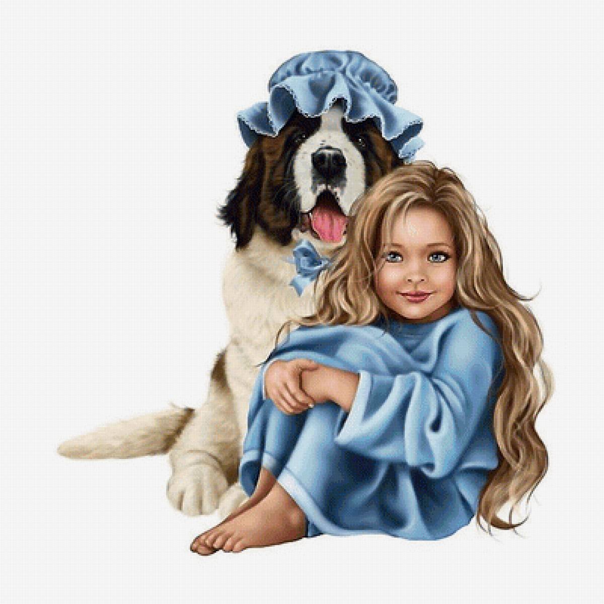 Девочка обнимает собаку арт