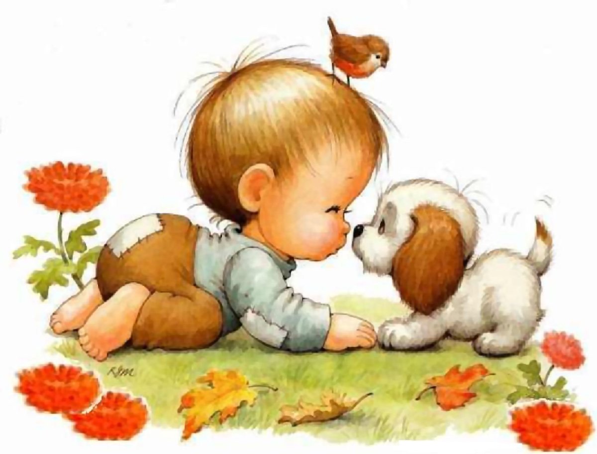 Мальчик с щенком рисунок