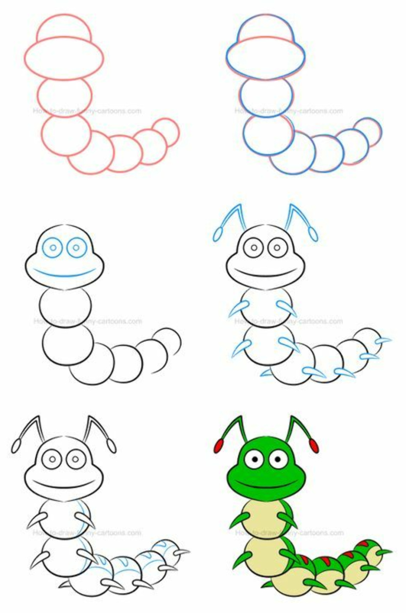 Пошаговое рисование для детей гусеница