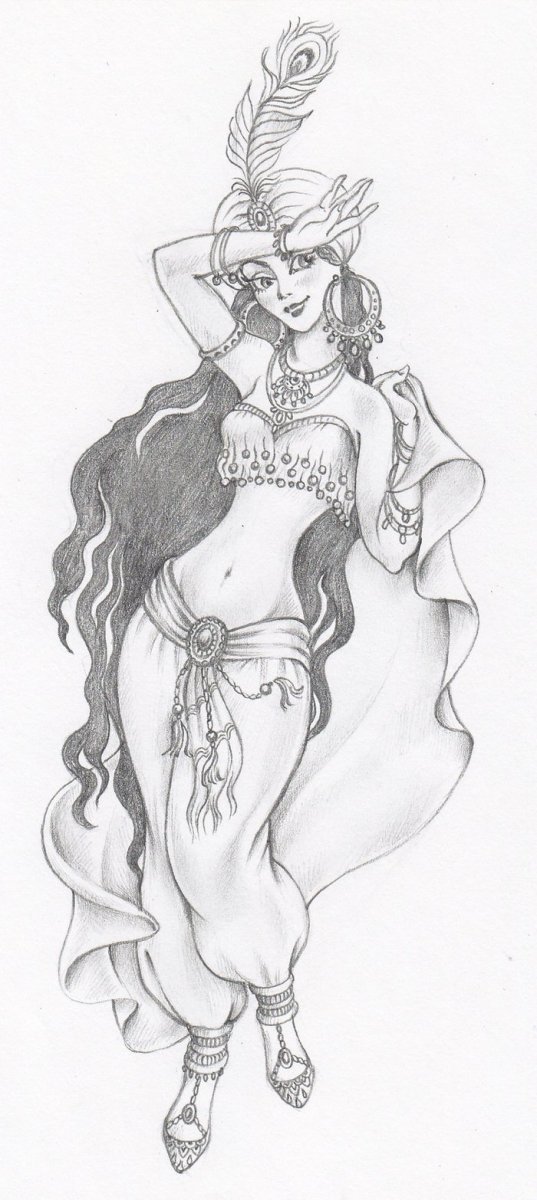 Восточная красавица рисунок карандашом