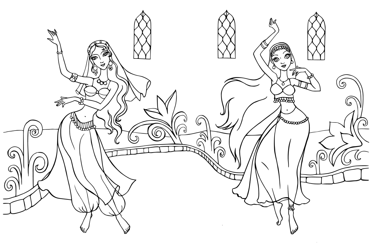 Раскраска восточные танцы