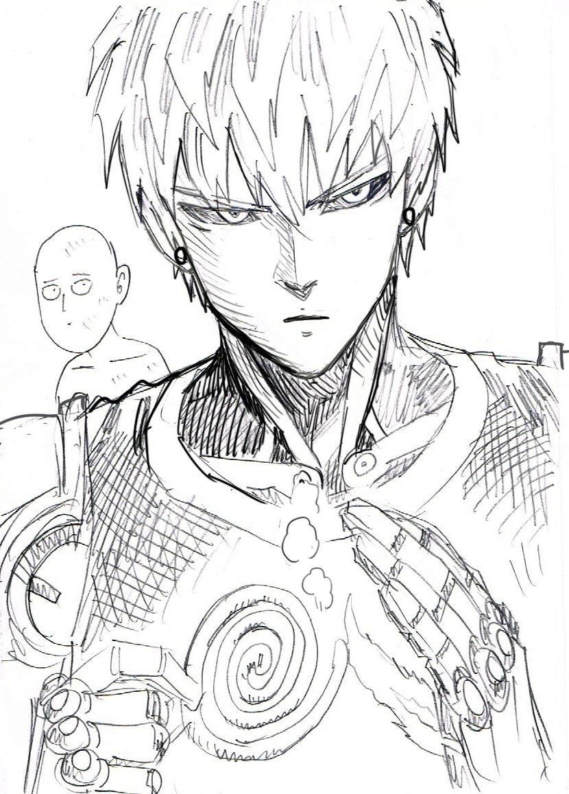 One Punch man Генос рисунок