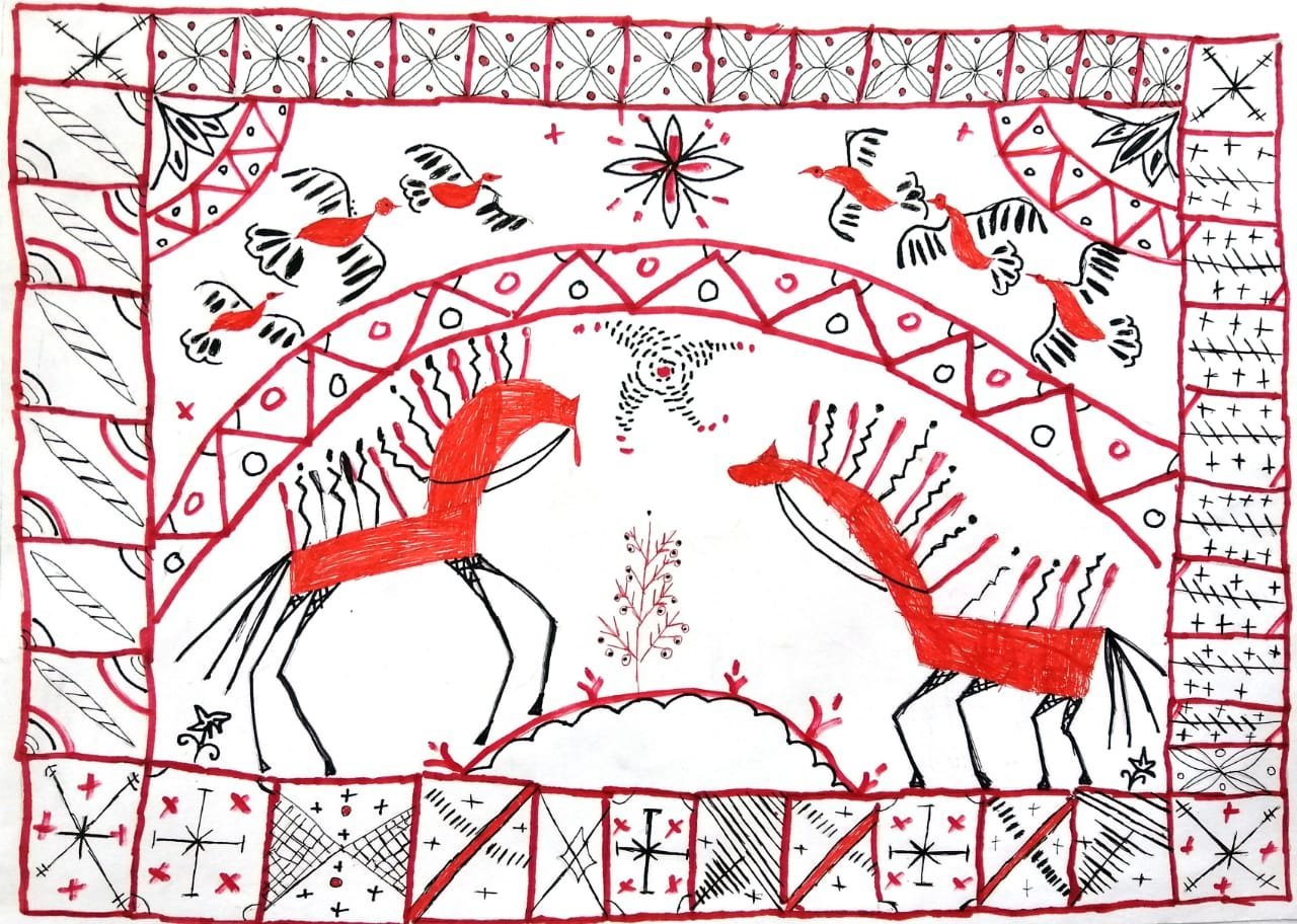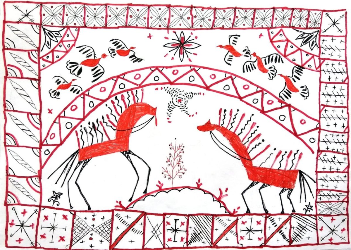 Лабиринт Наина Величко рисуем в стиле мезенской росписи