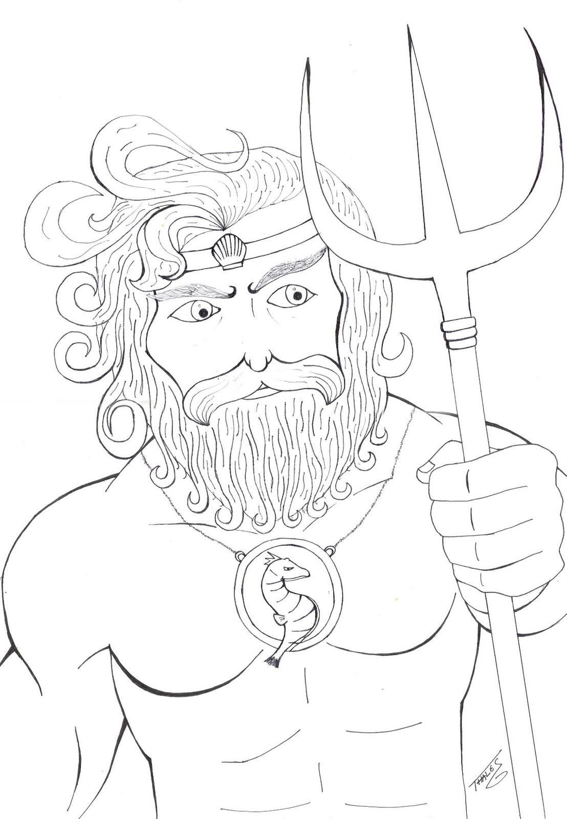 Бог Греции Посейдон раскраска