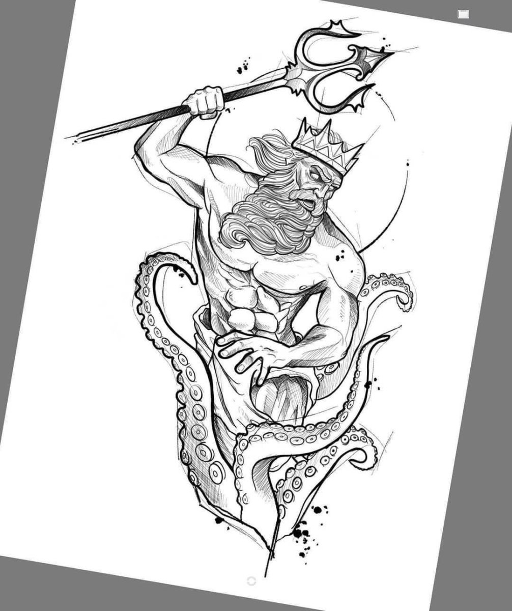 Посейдон тату эскиз
