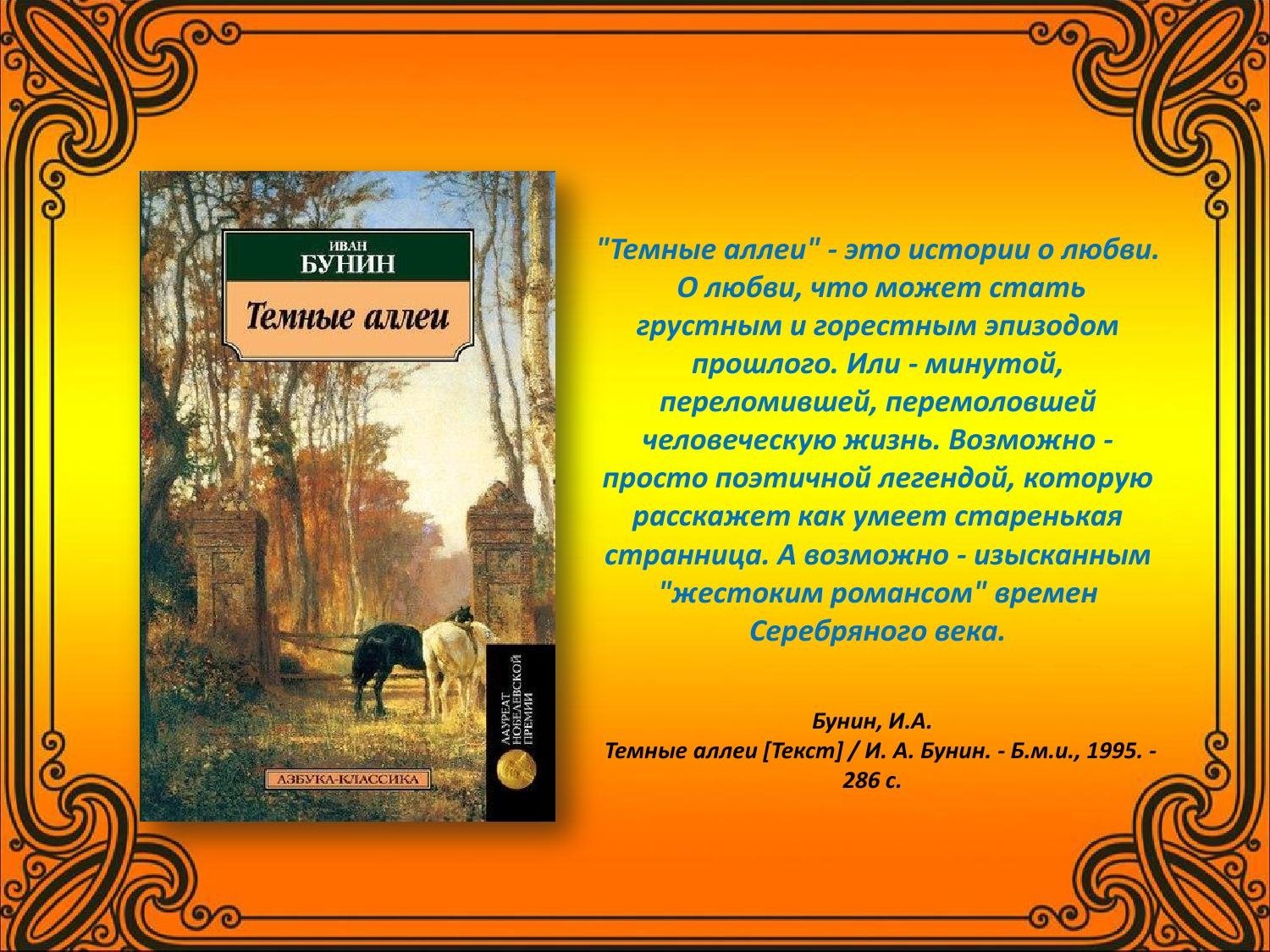 Бунин темные аллеи картины аллеи