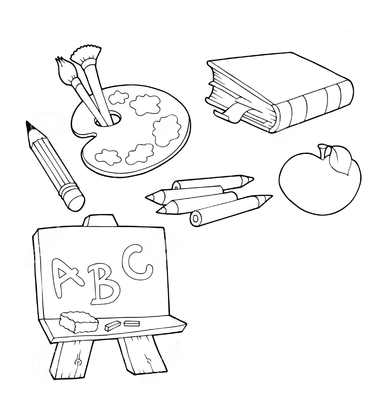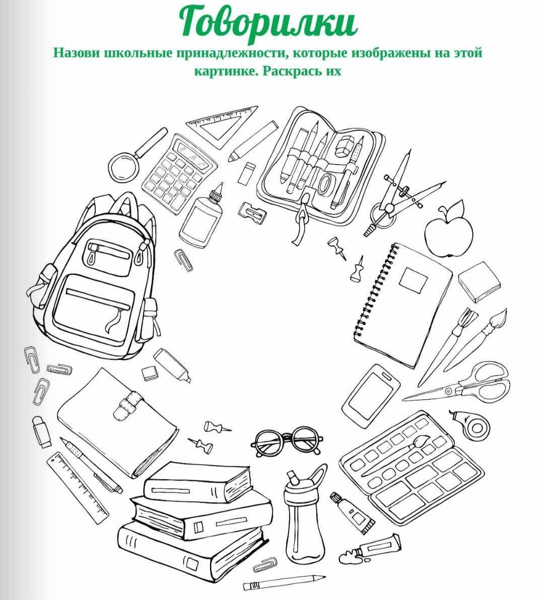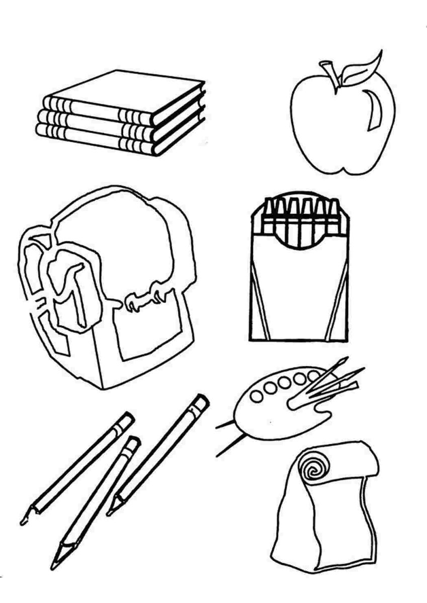 Учебные принадлежности раскраска для детей