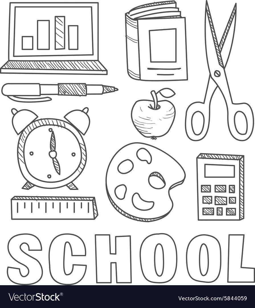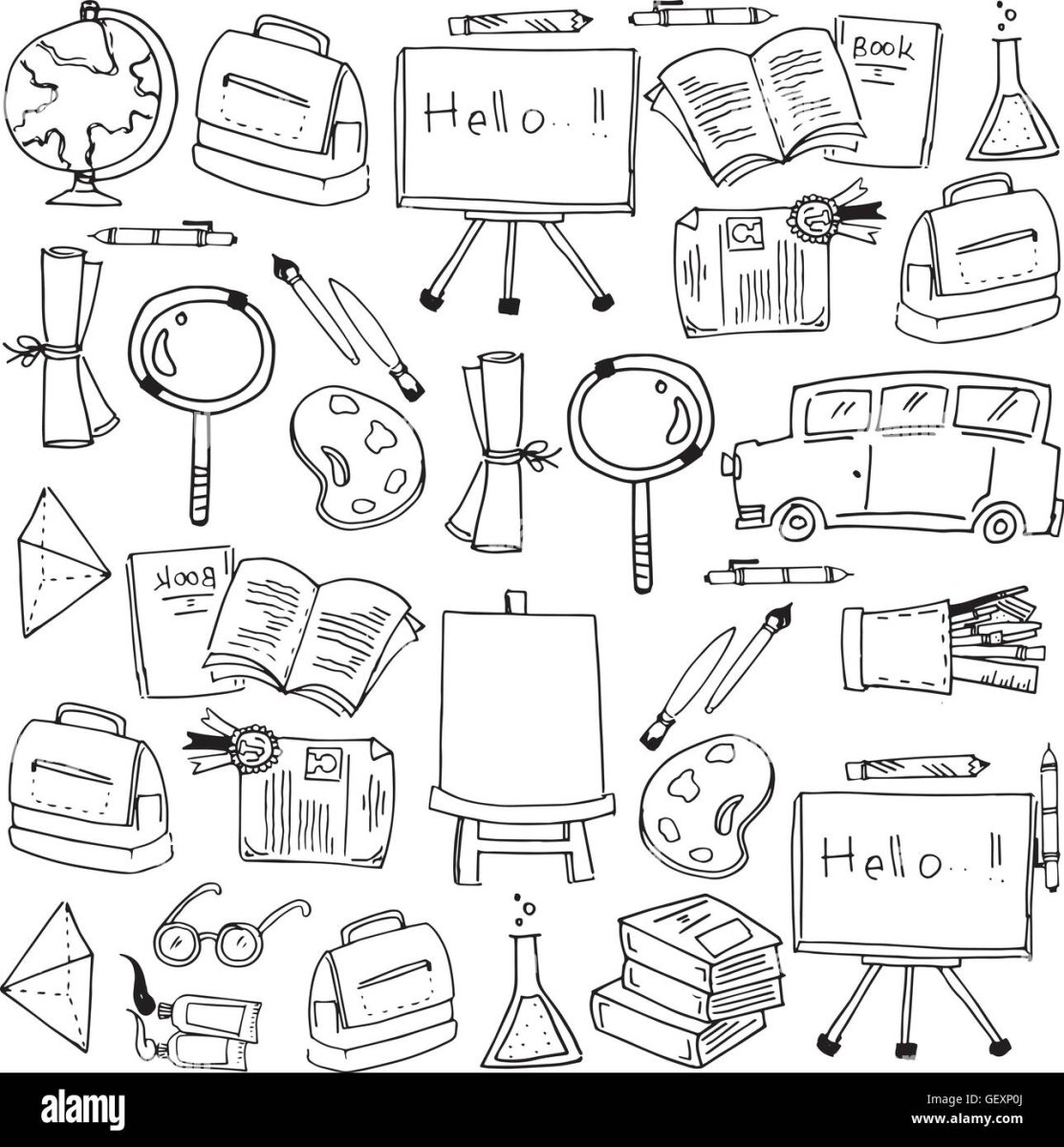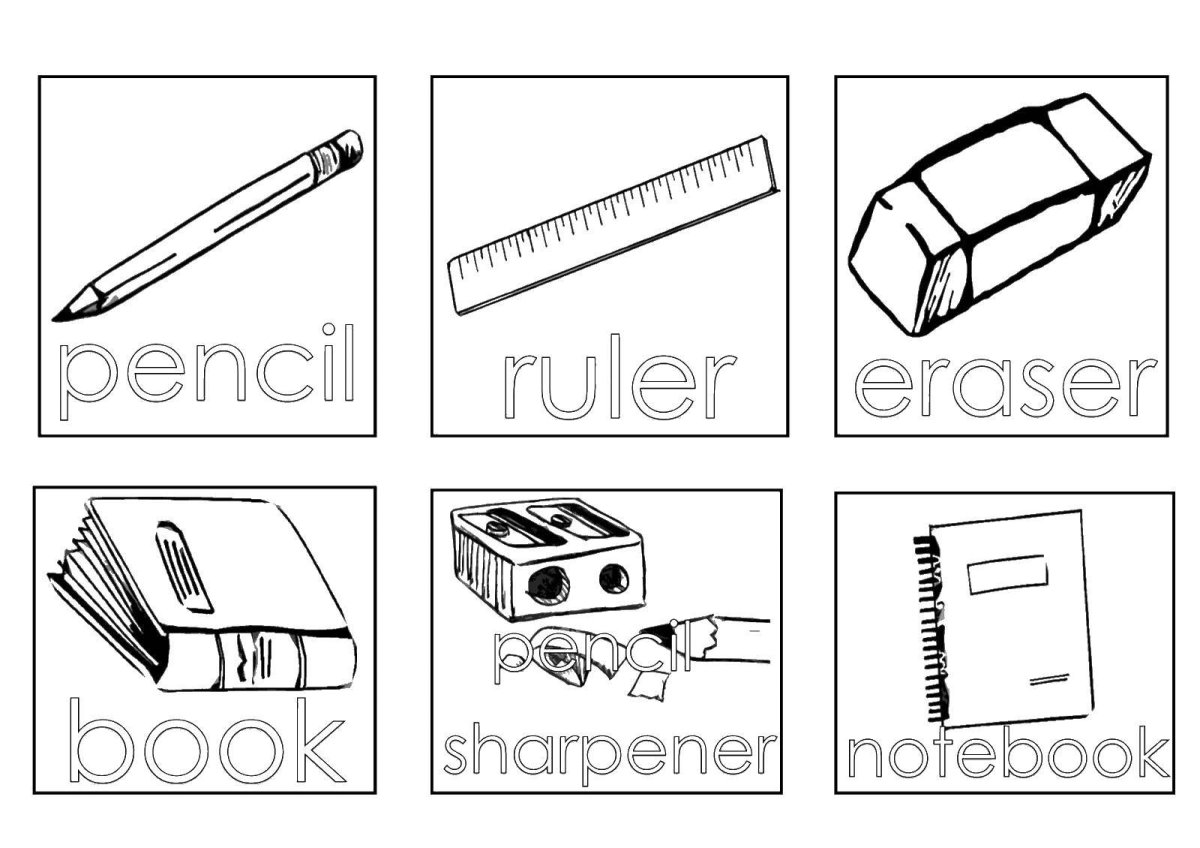 Школьные принадлежности чб
