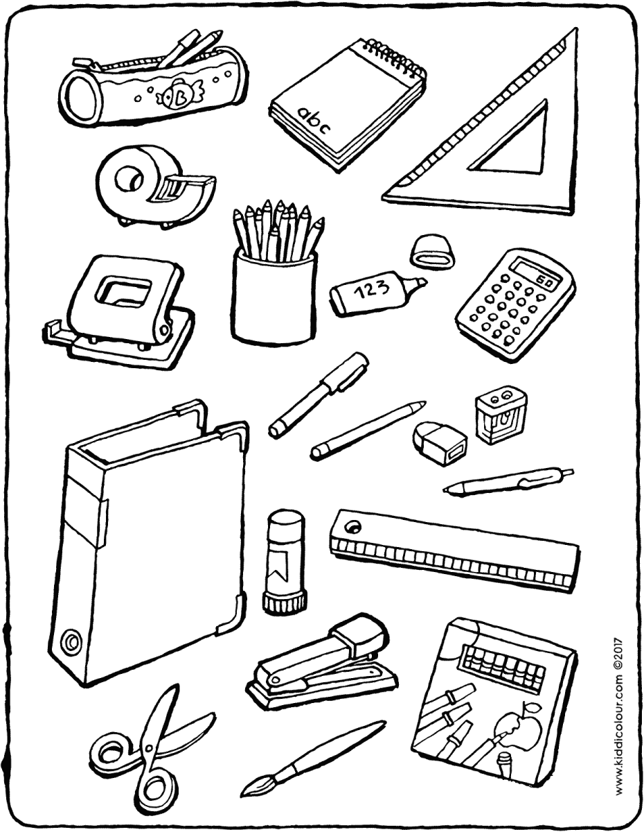 Канцелярские товары раскраска