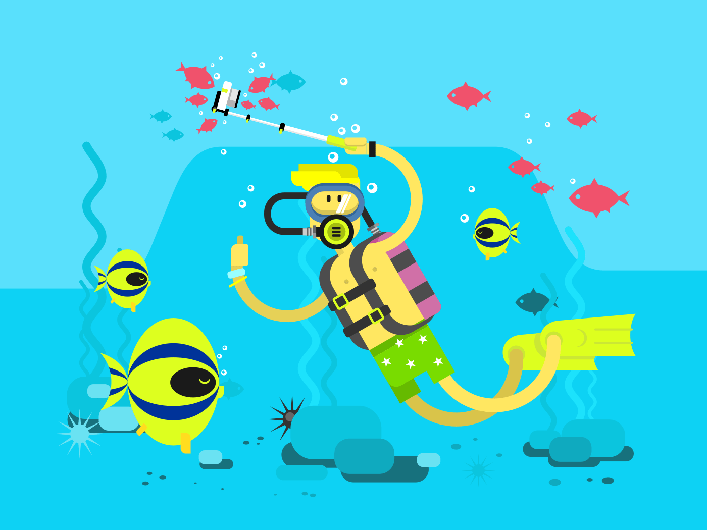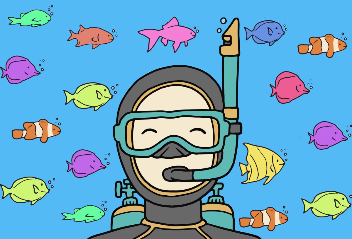 Дайвинг в нарисованном стиле