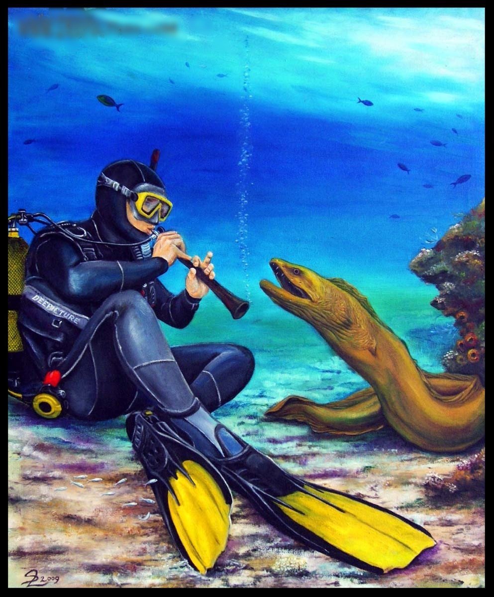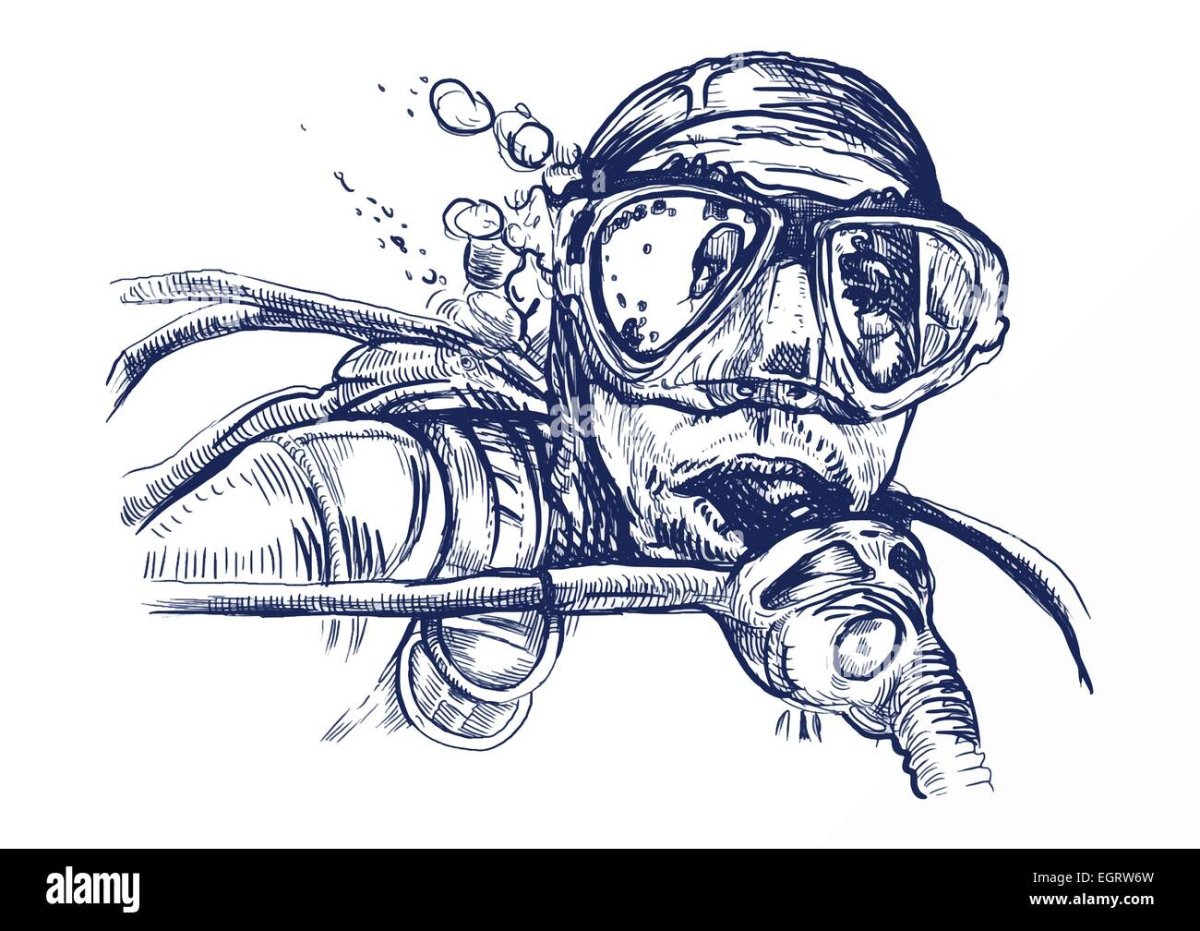 Иллюстрации акваланг чернилами
