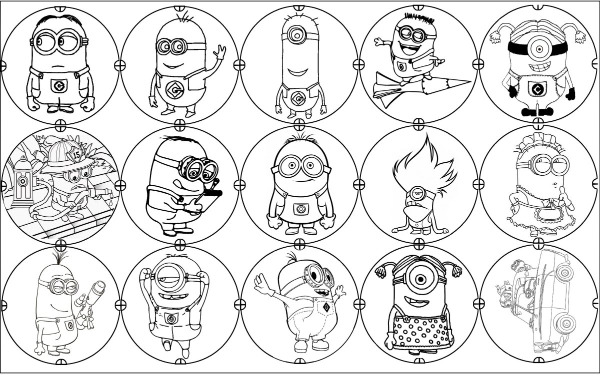 Стикеры для распечатки черно белые Миньоны