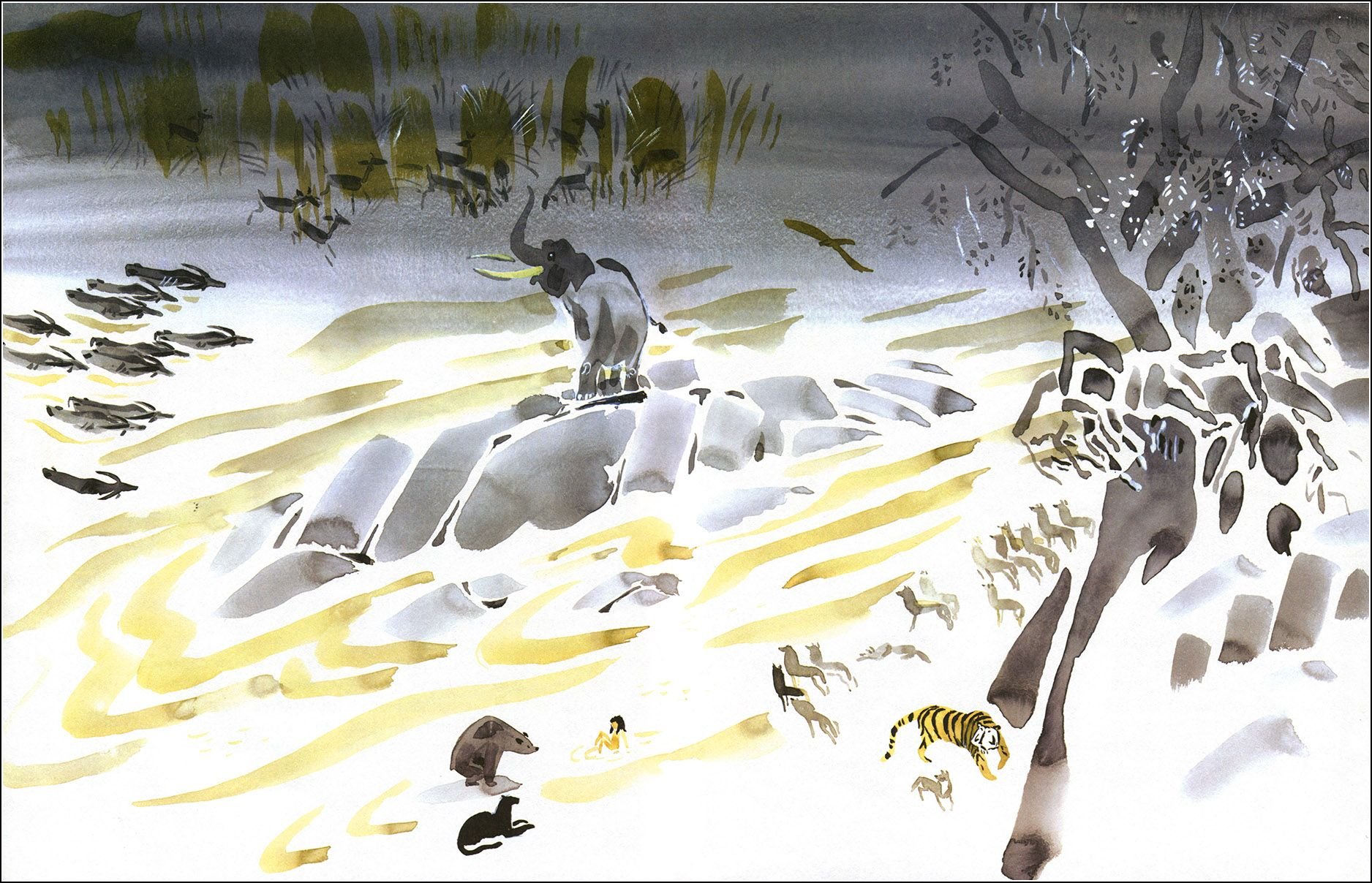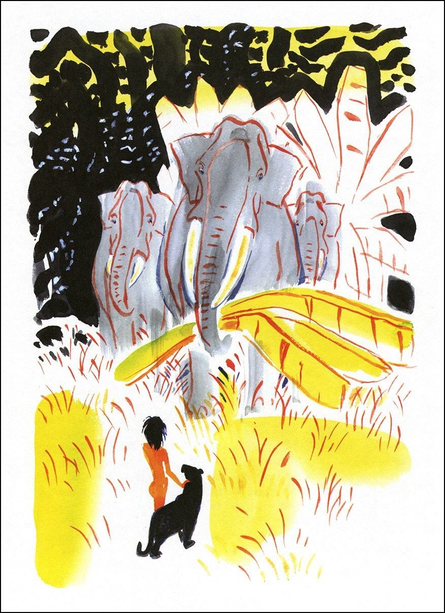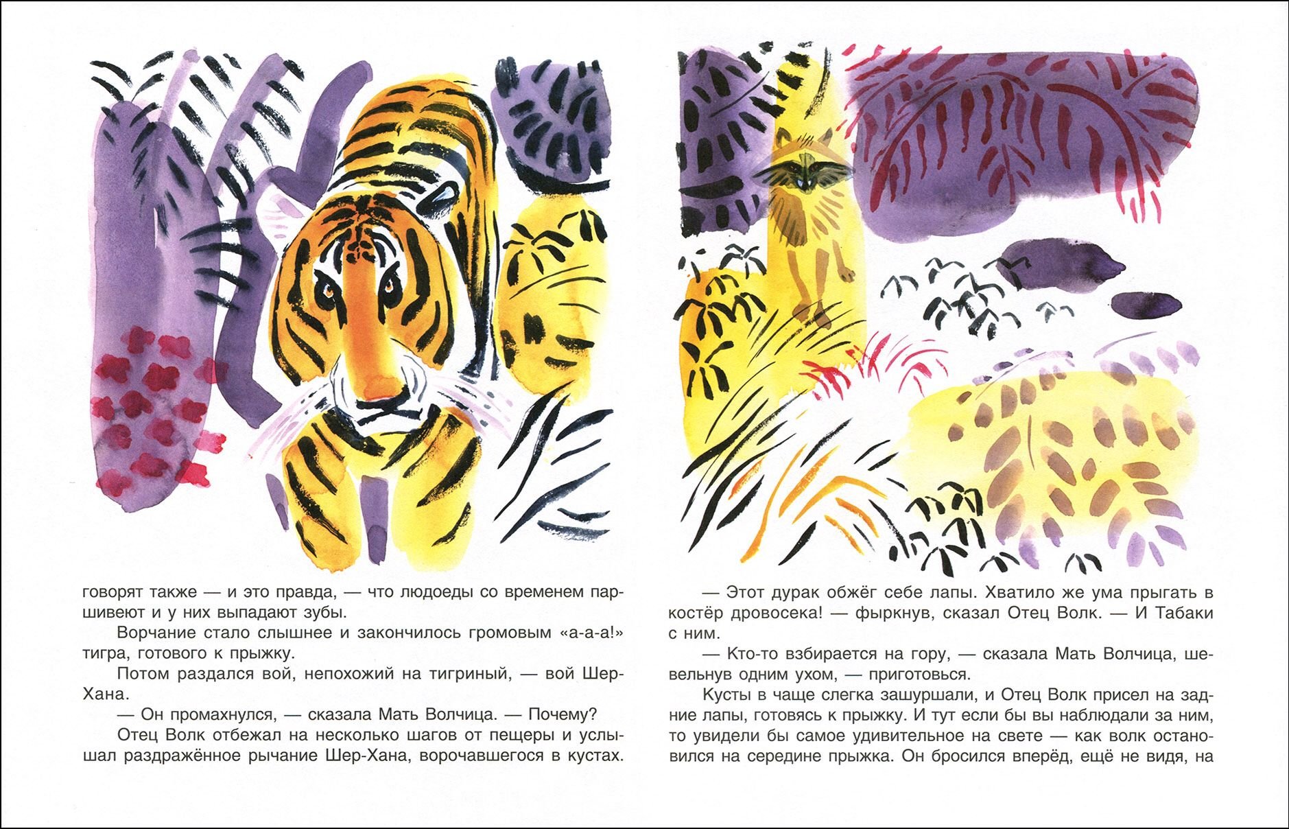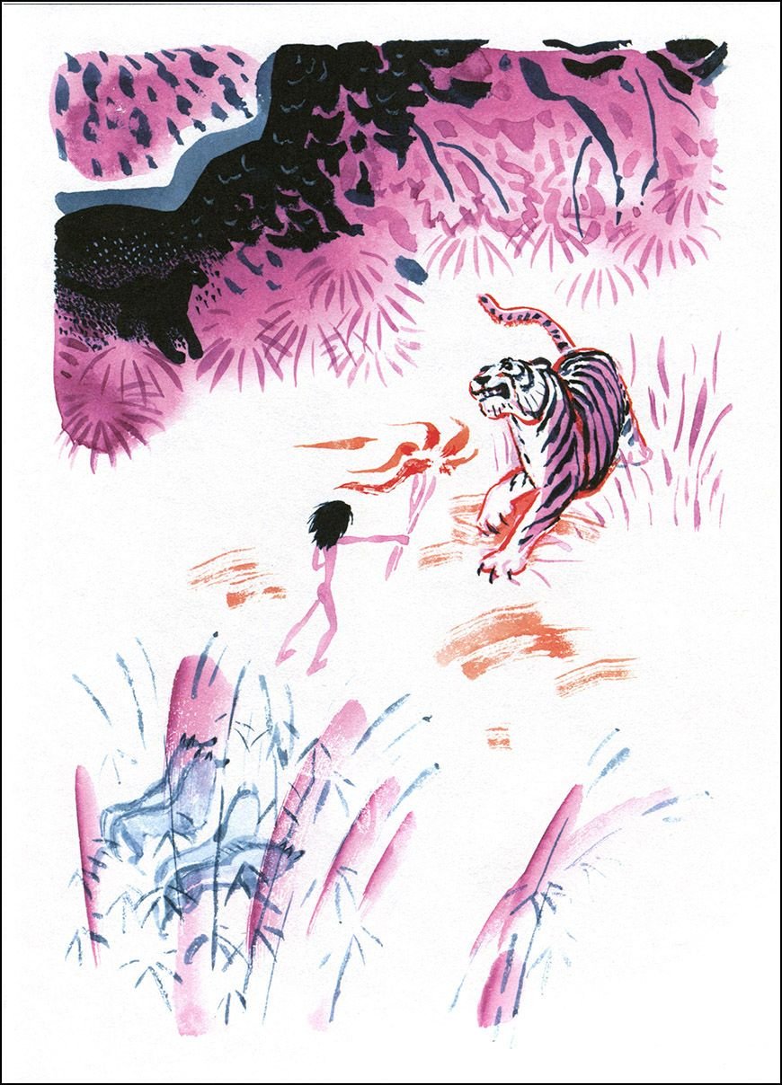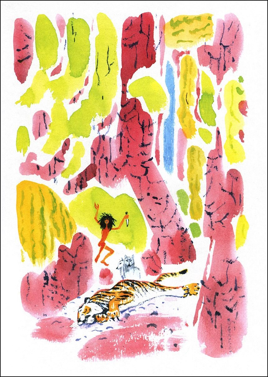 Пример акварельной иллюстрации в детской книге Маугли