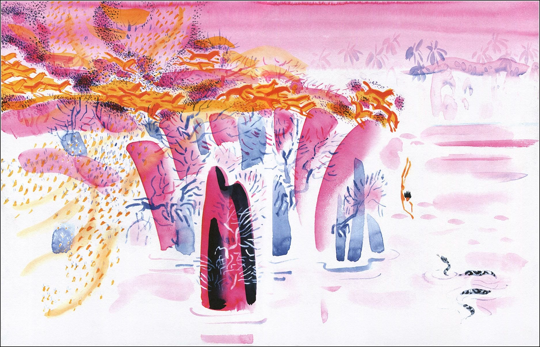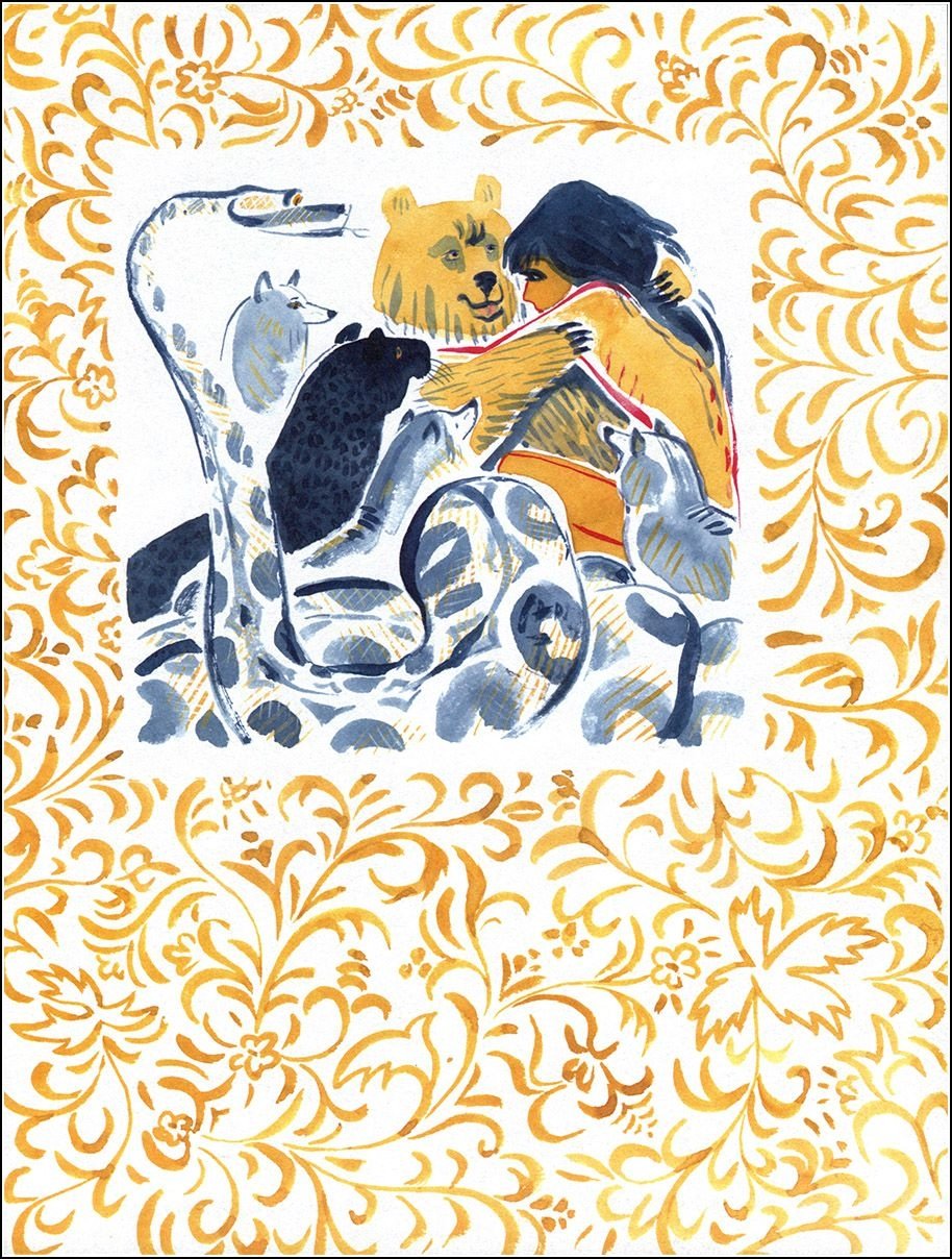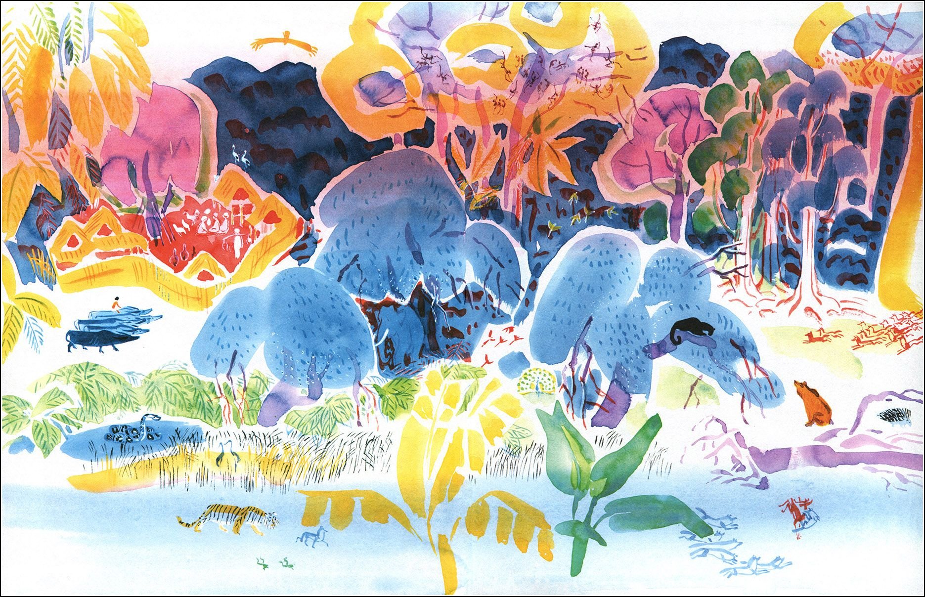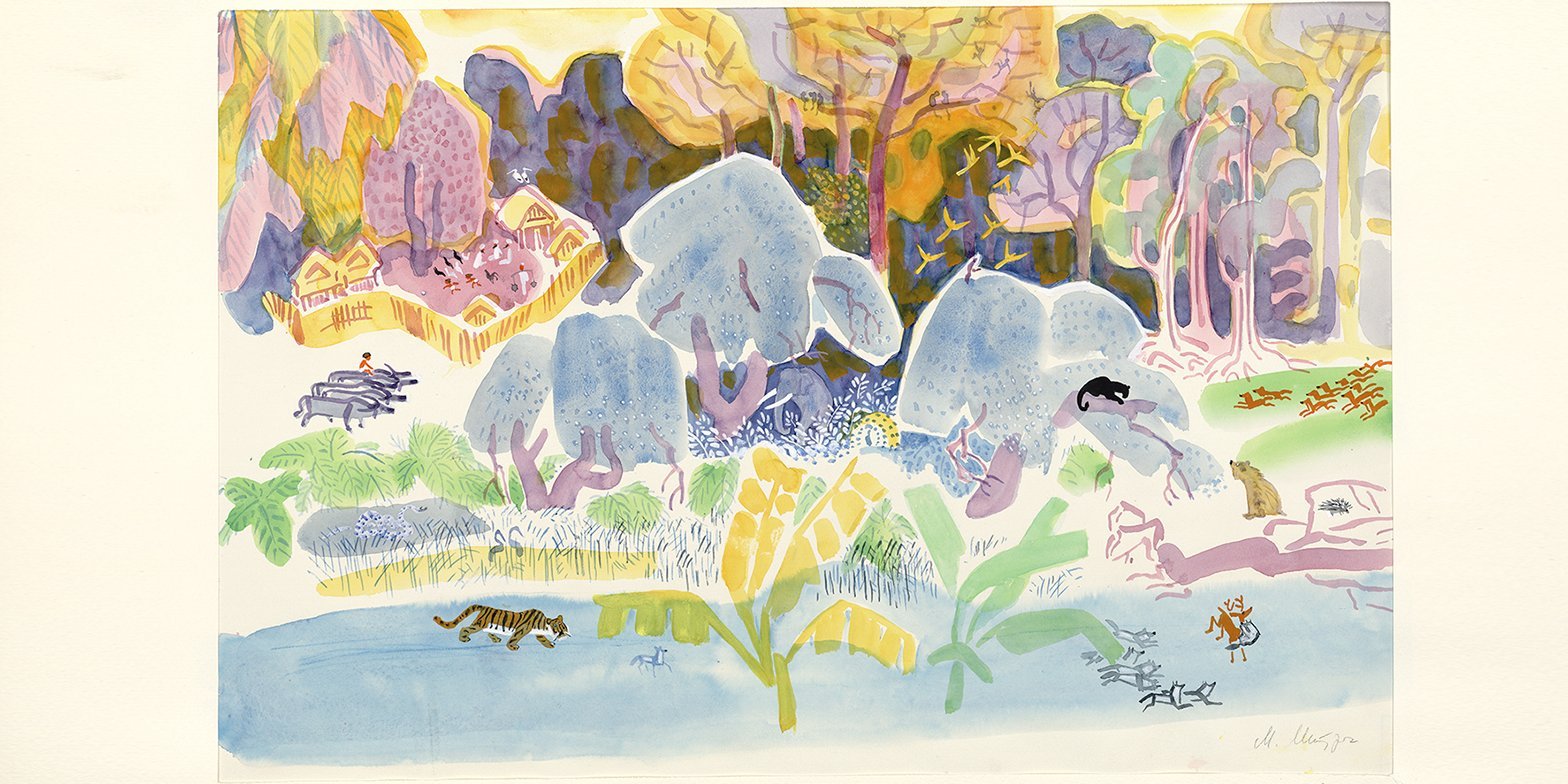 Пример акварельной иллюстрации в детской книге Маугли