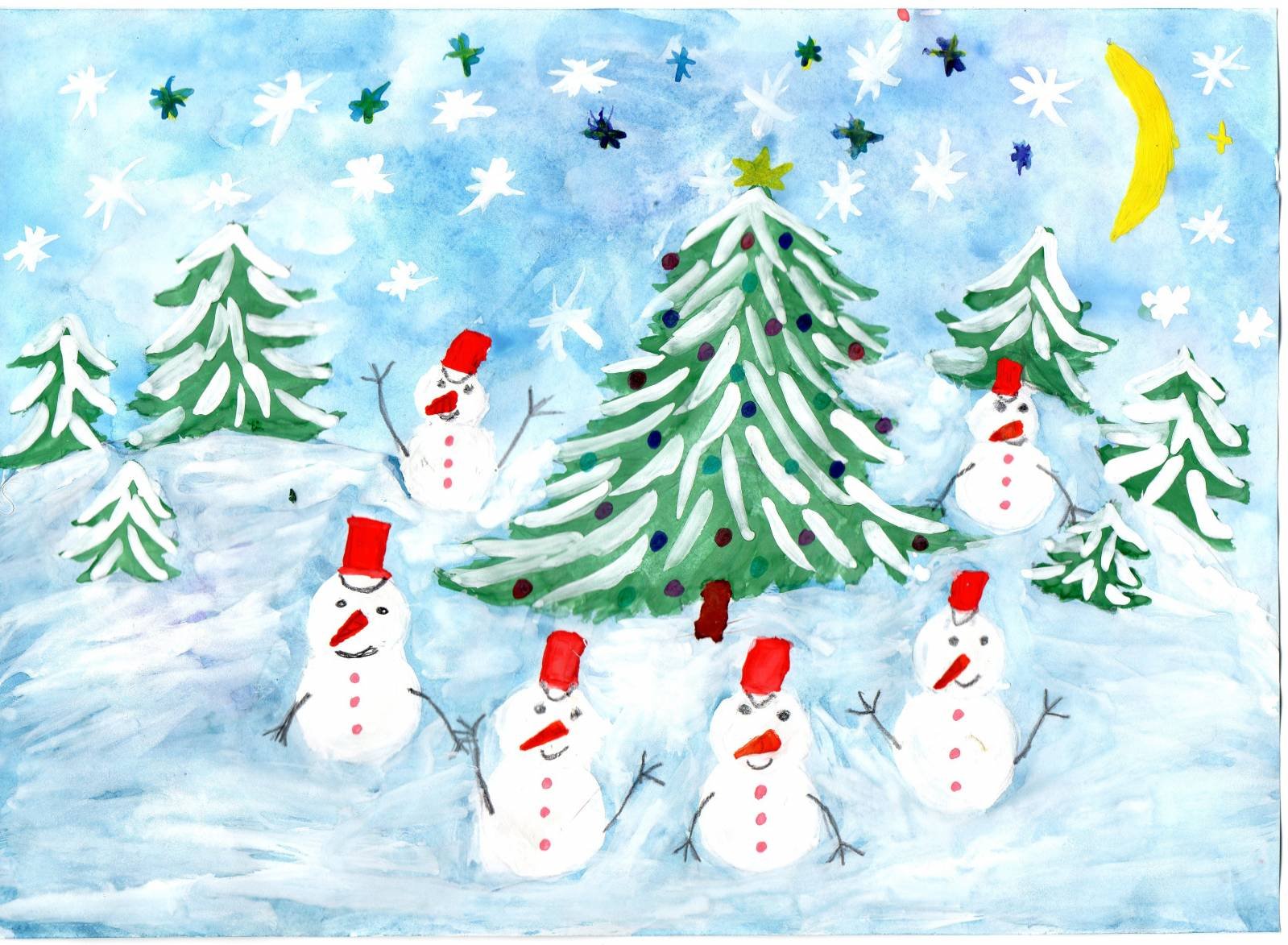 Детские новогодние рисунки