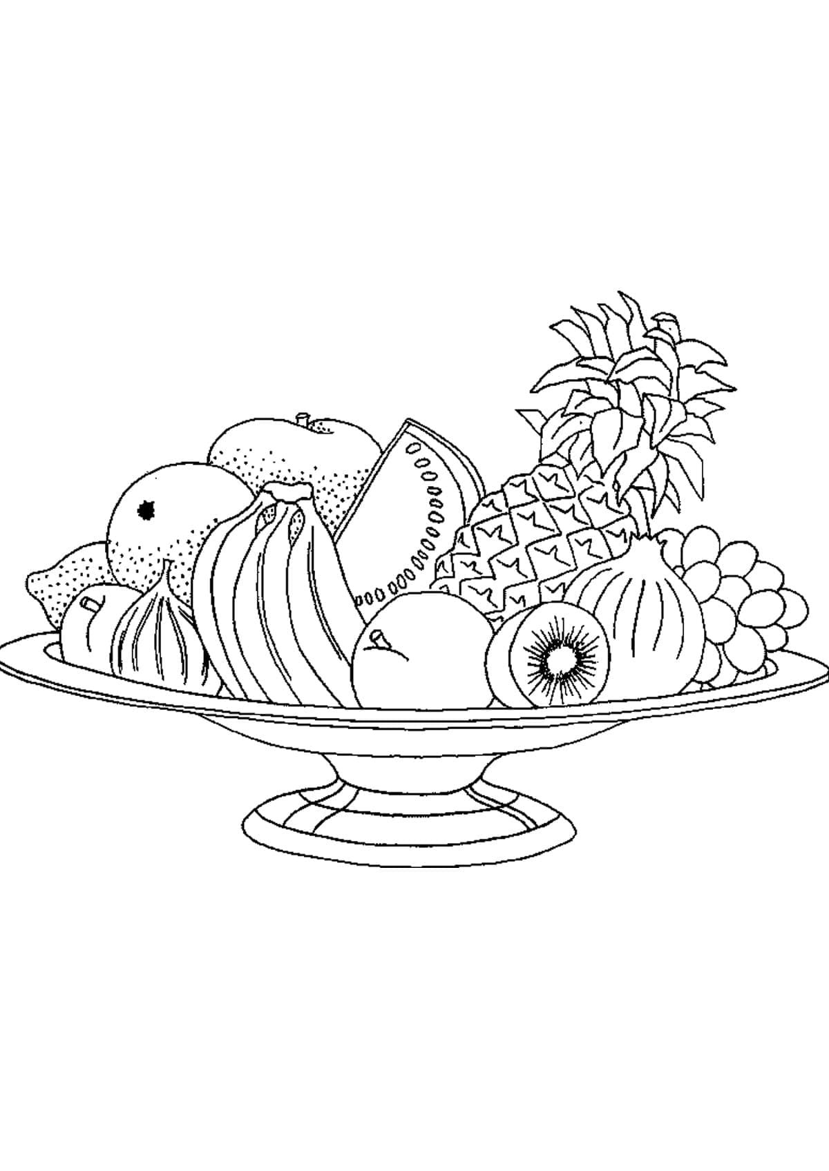 Тарелка с фруктами раскраска