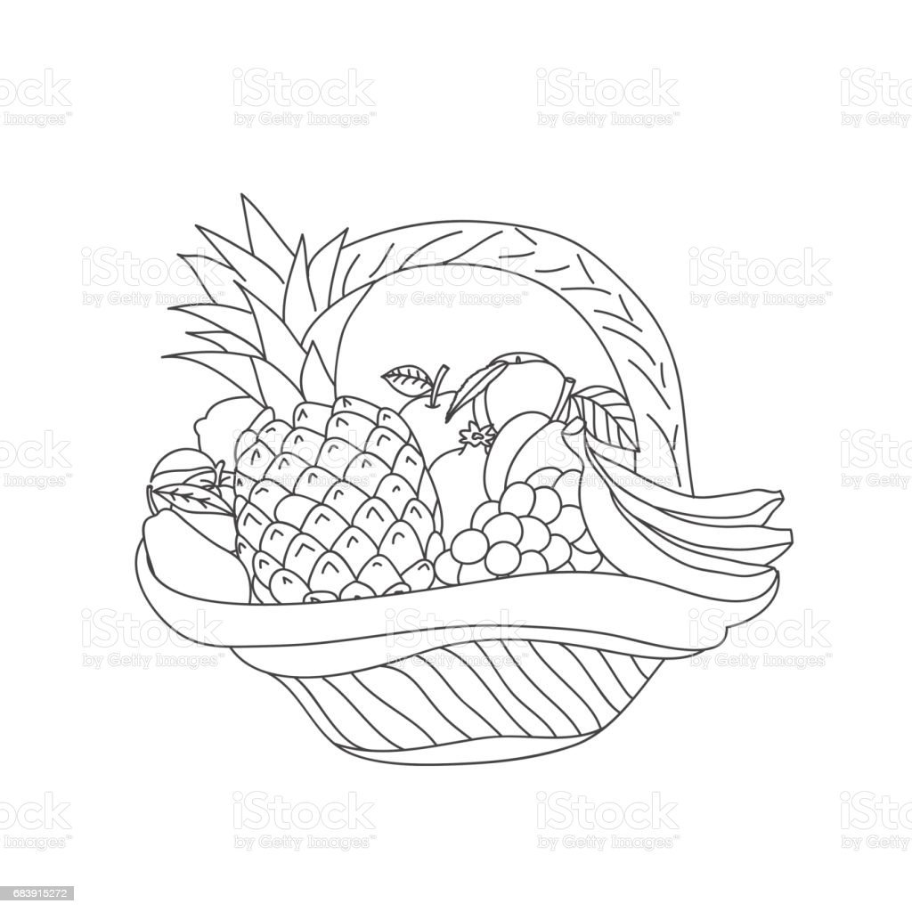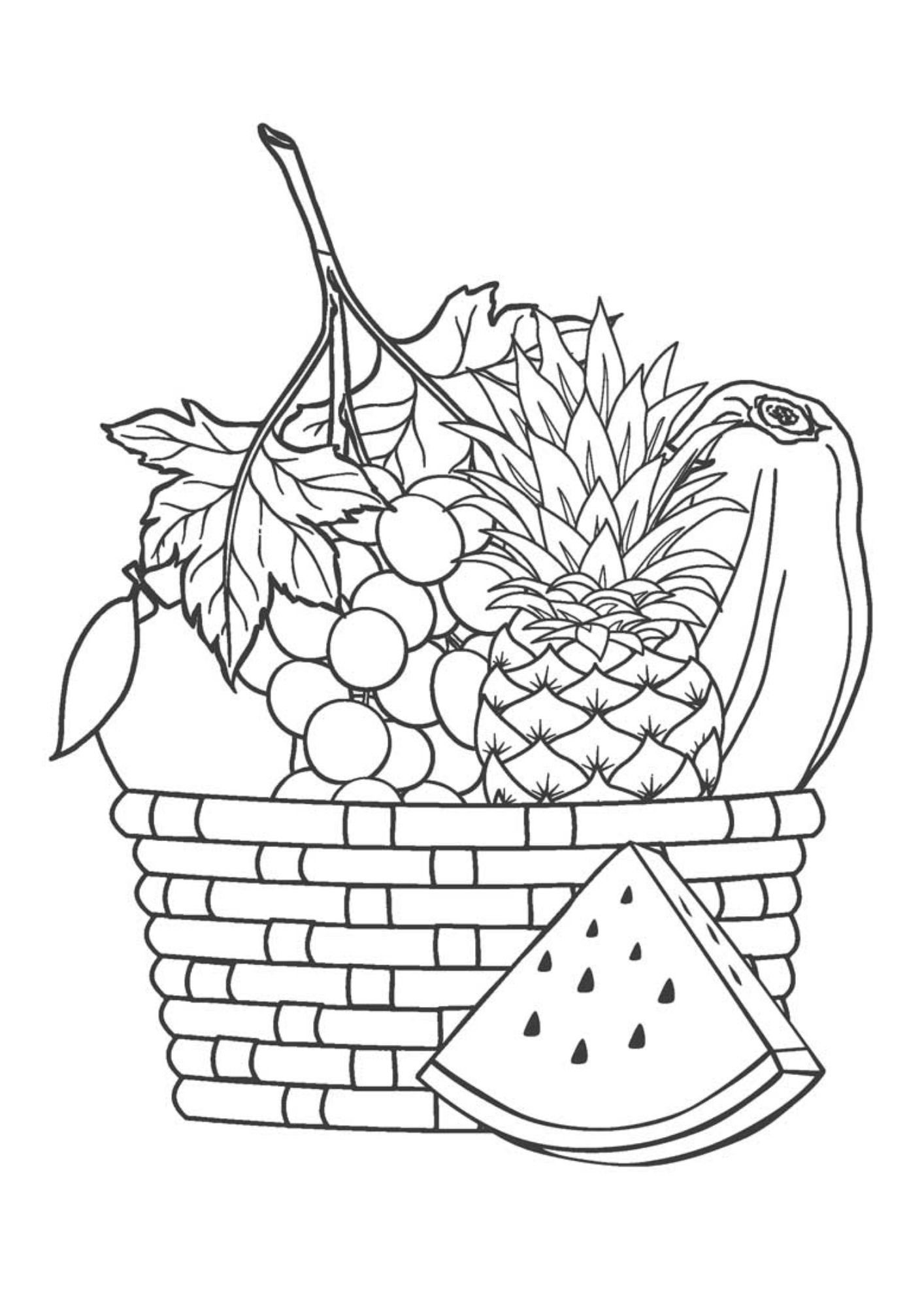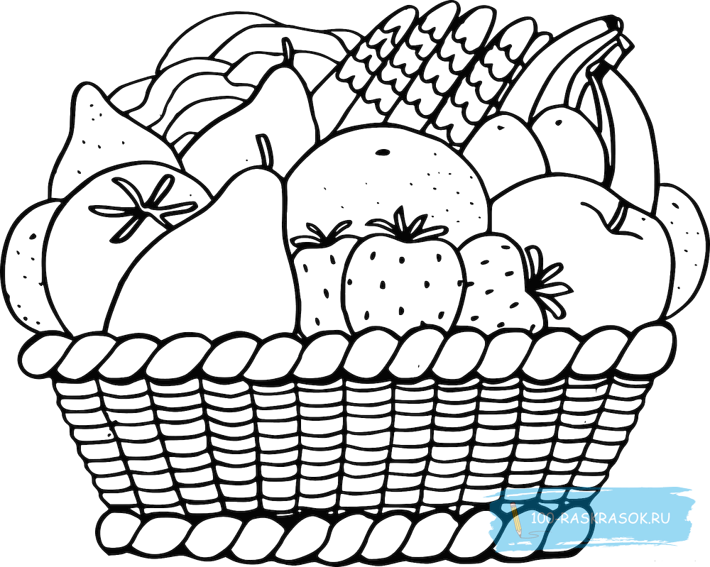 Корзина с фруктами раскраска