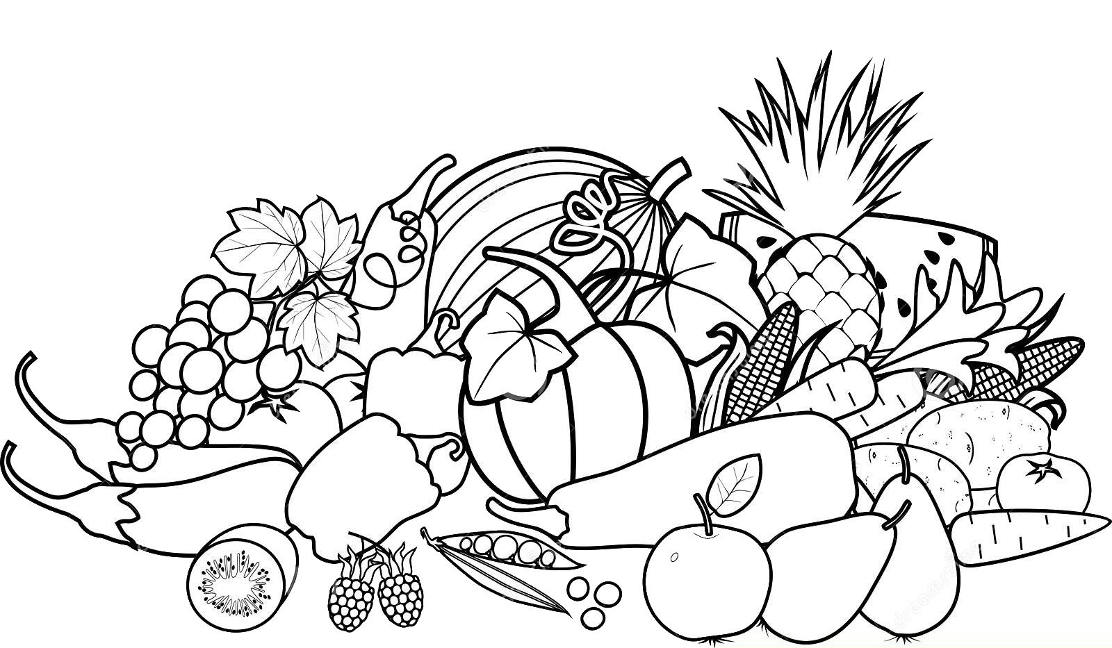 Овощи и фрукты раскраска для детей