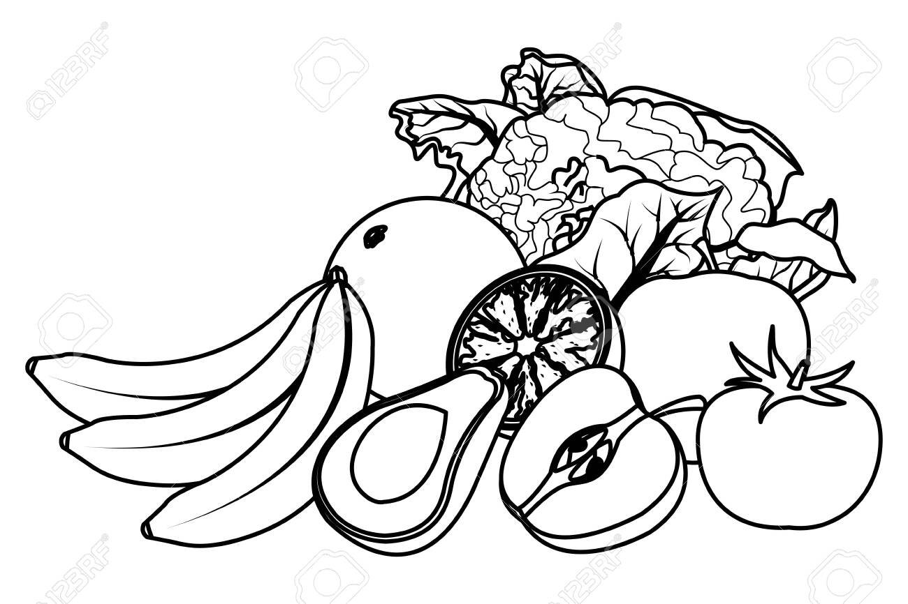 Овощи и фрукты черно белые