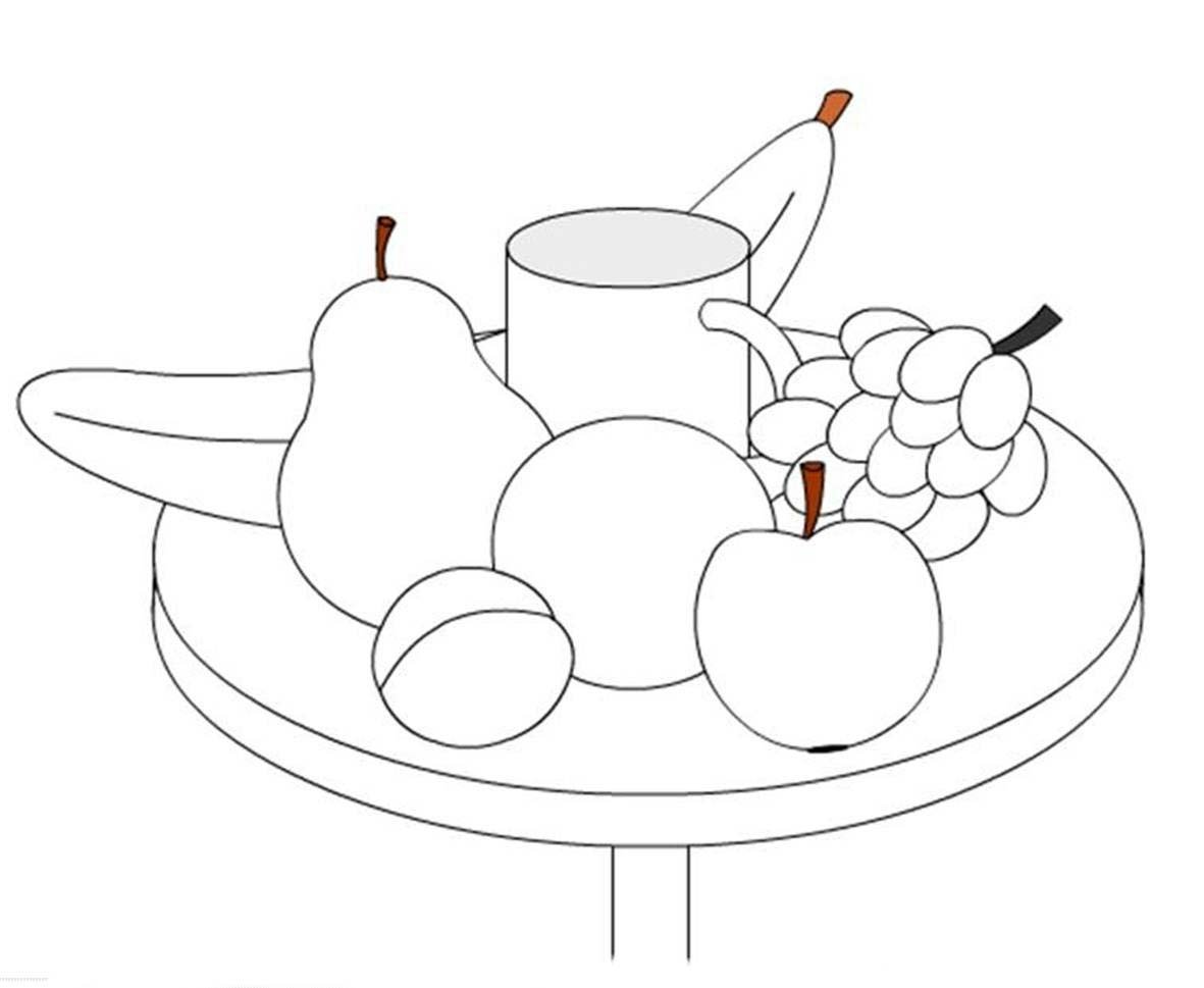 Натюрморт с фруктами для детей раскраска