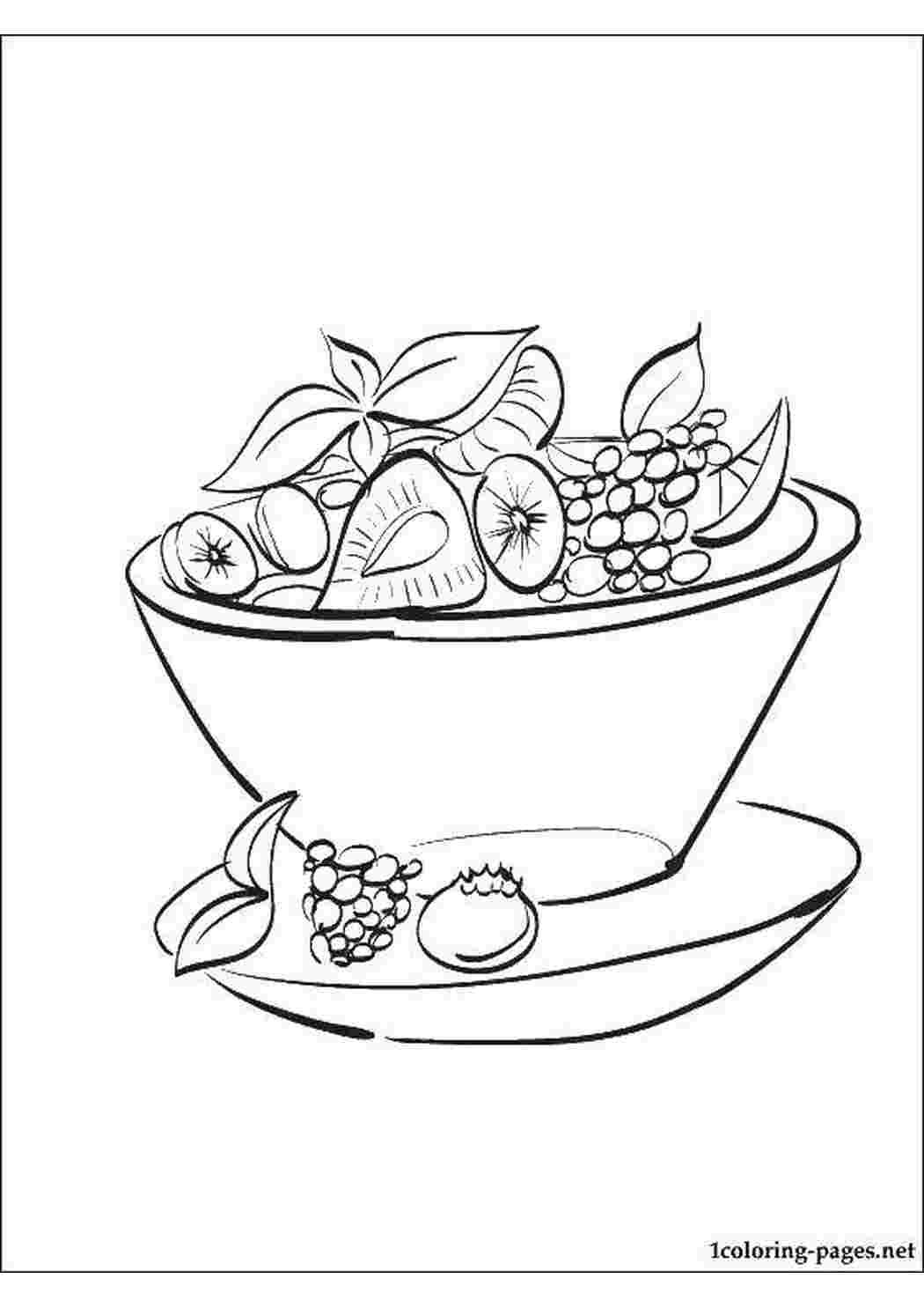Раскраска фруктовый салат в тарелке
