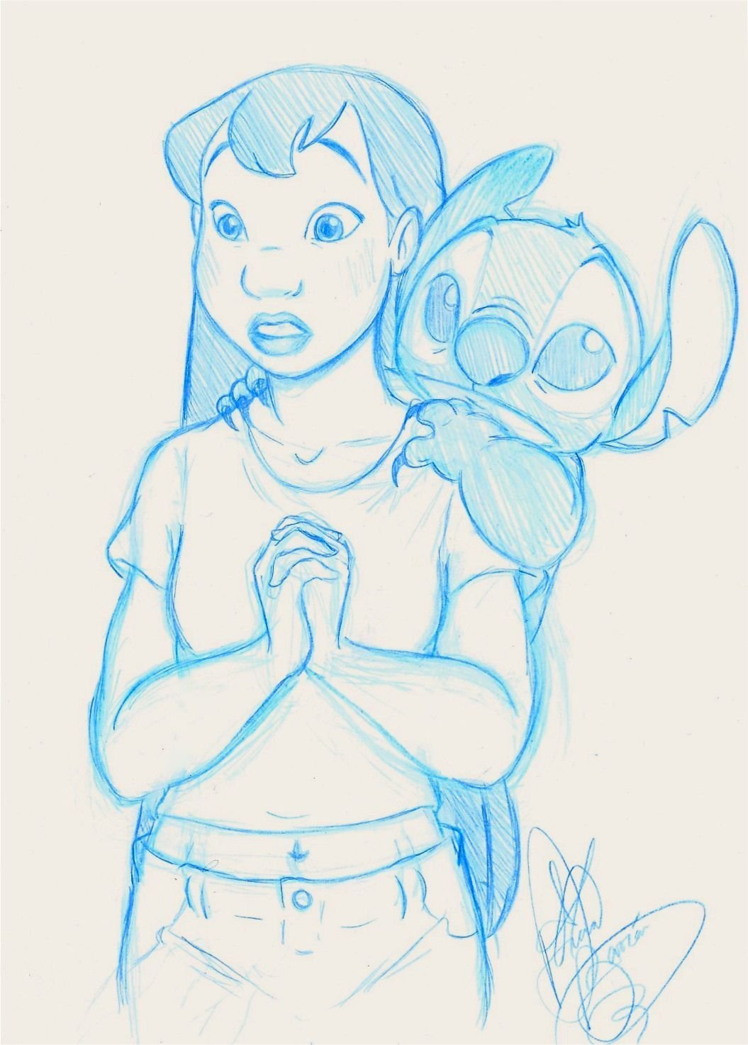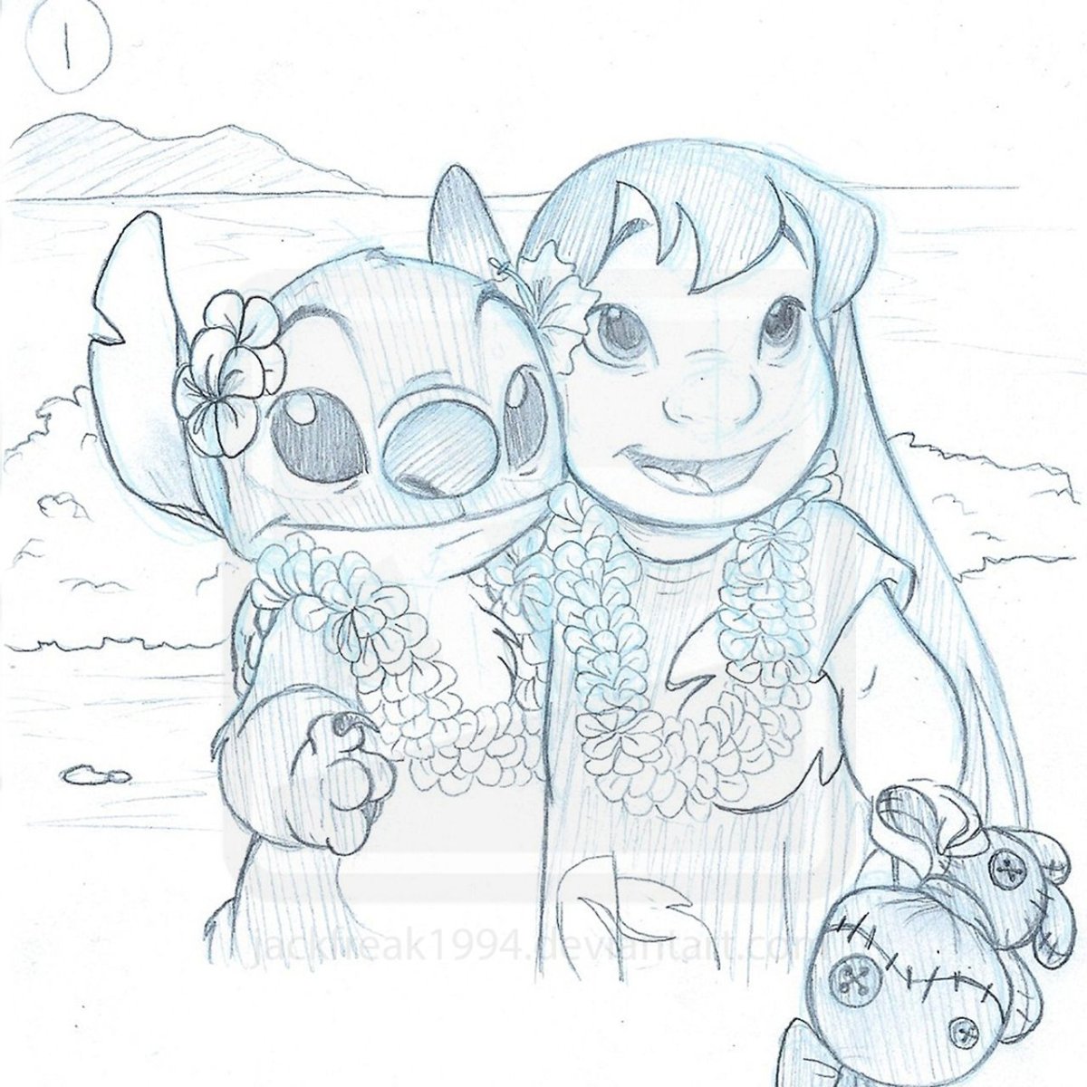 Лило и Стич карандашом