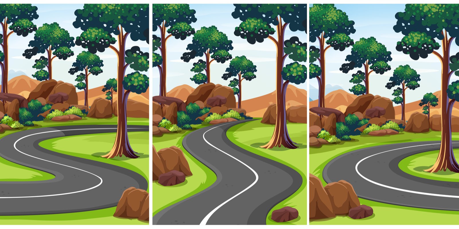 Мультяшный лес с дорогой