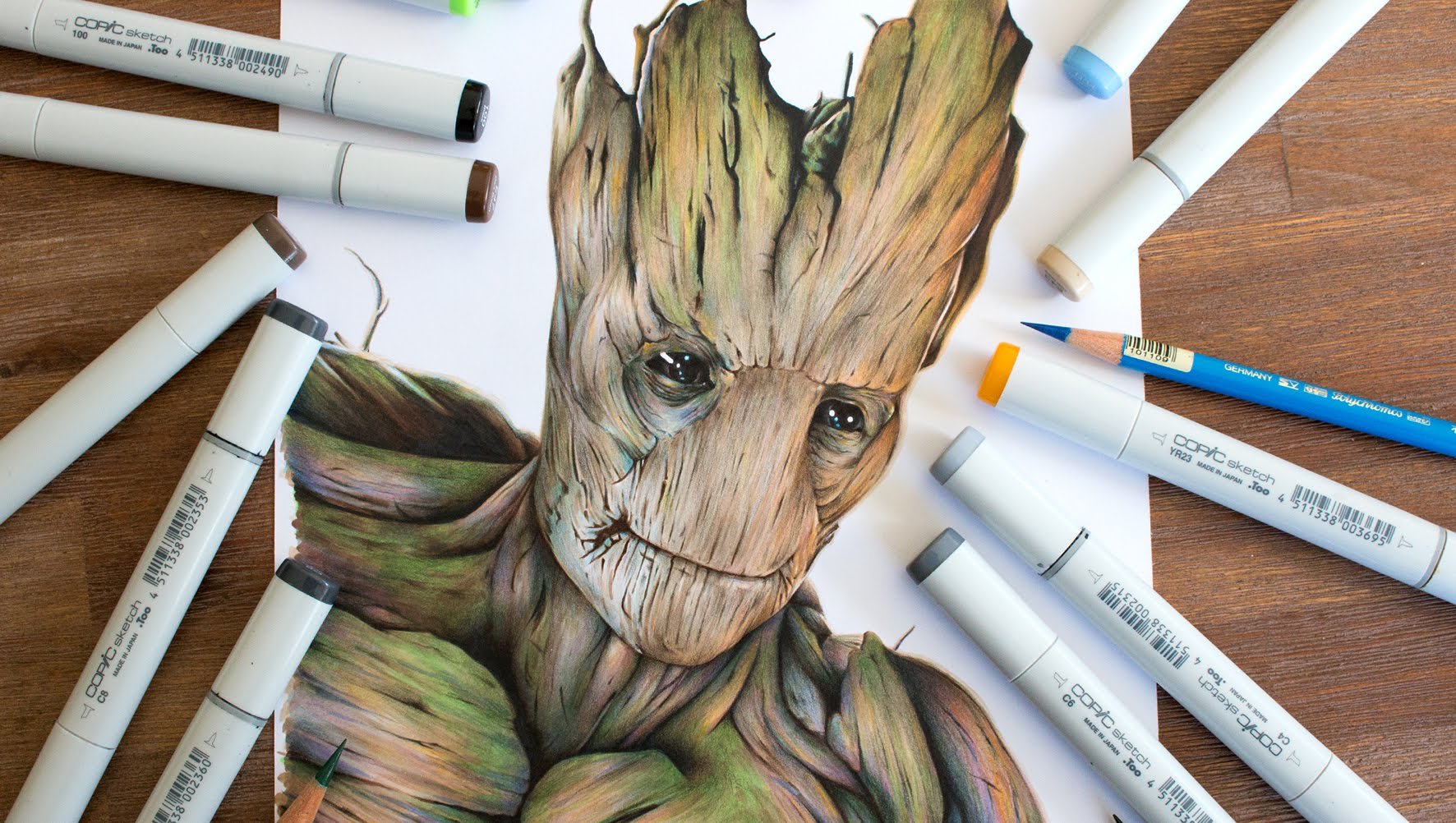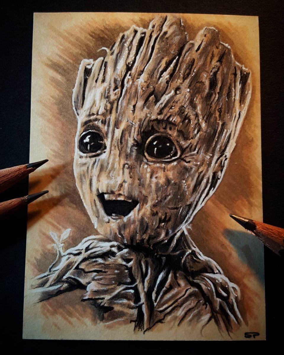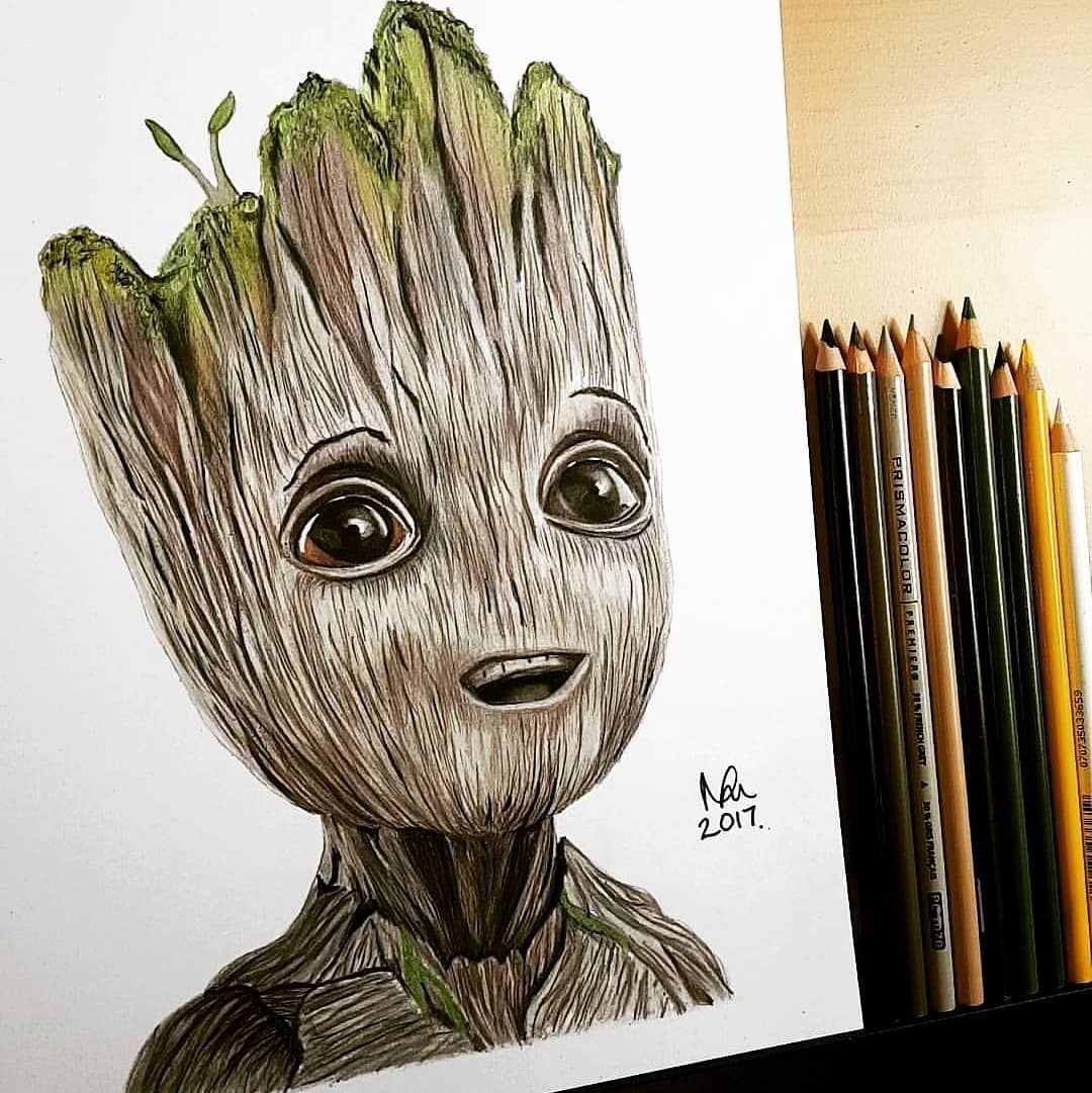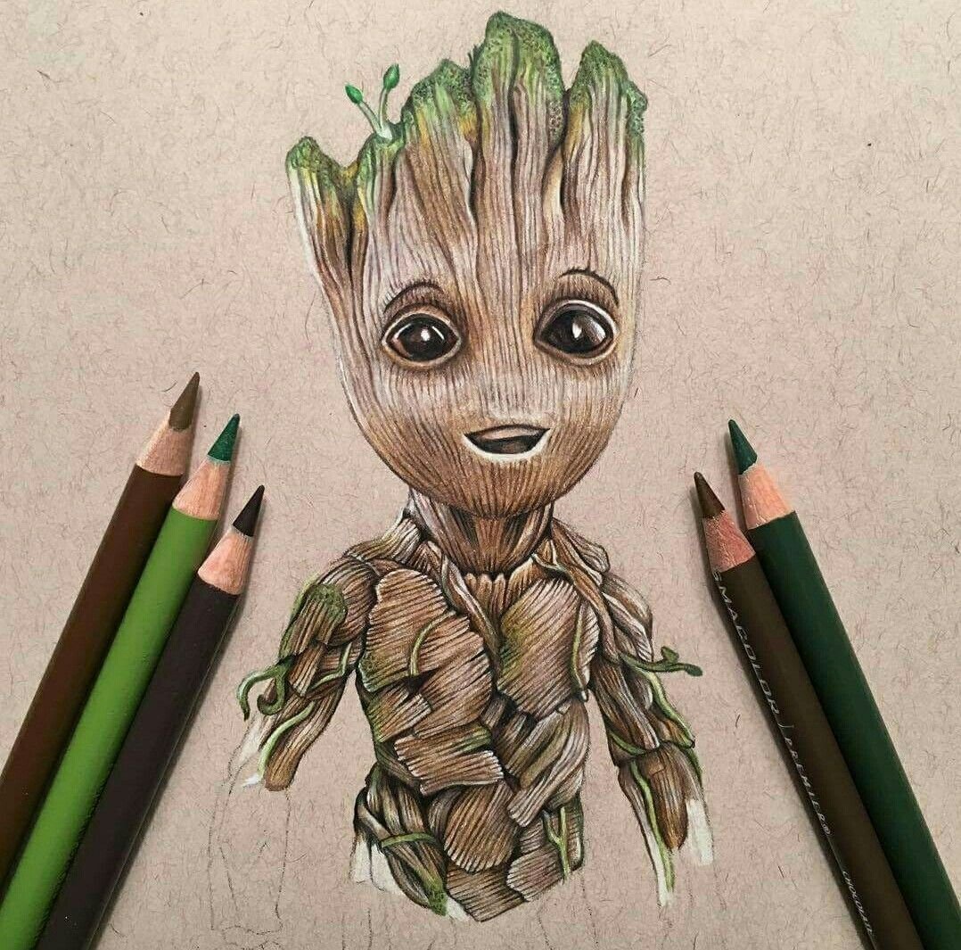 Грут цветными карандашами