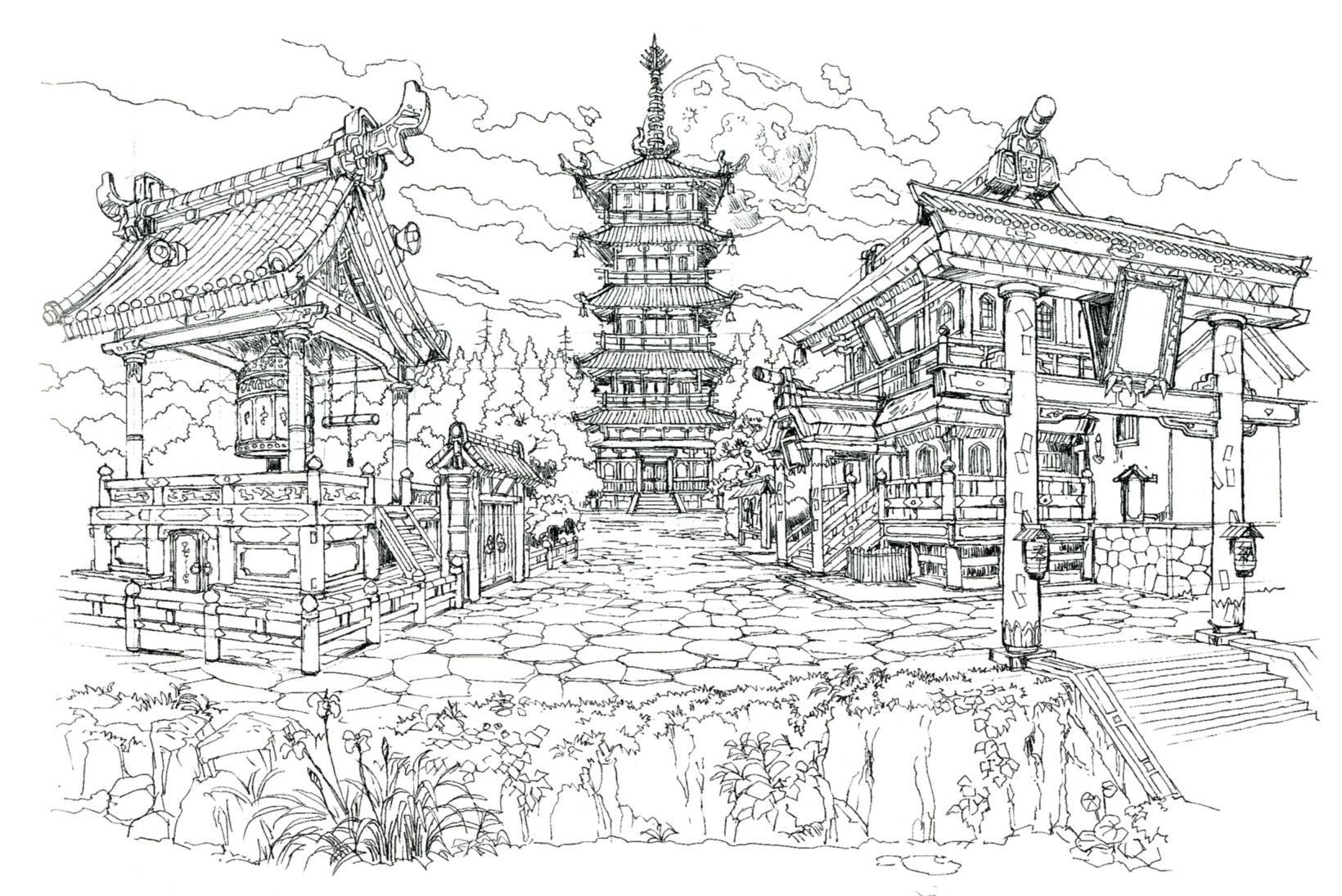 Китайские храмы скетчи