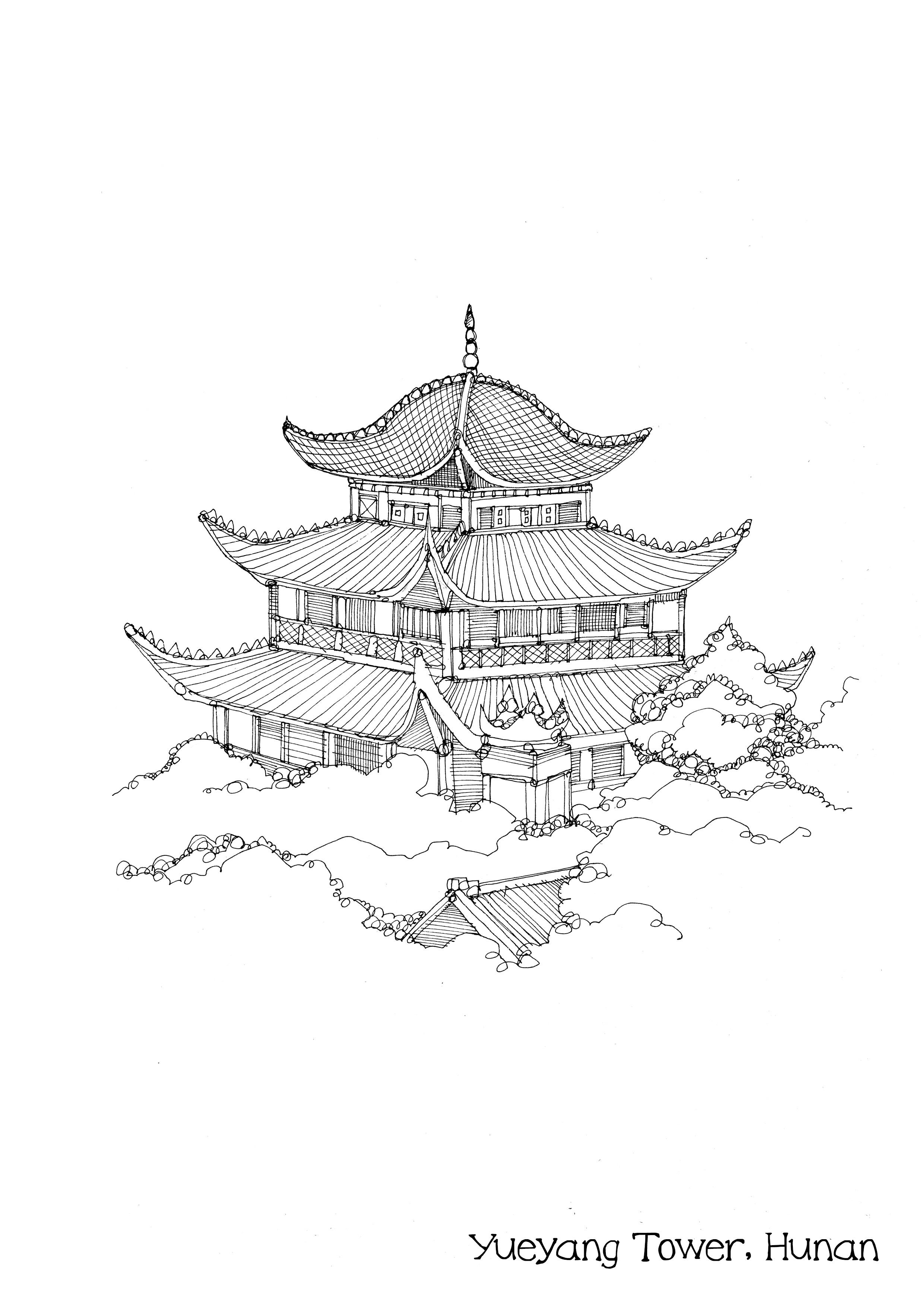 Пагода китайская архитектура карандашом