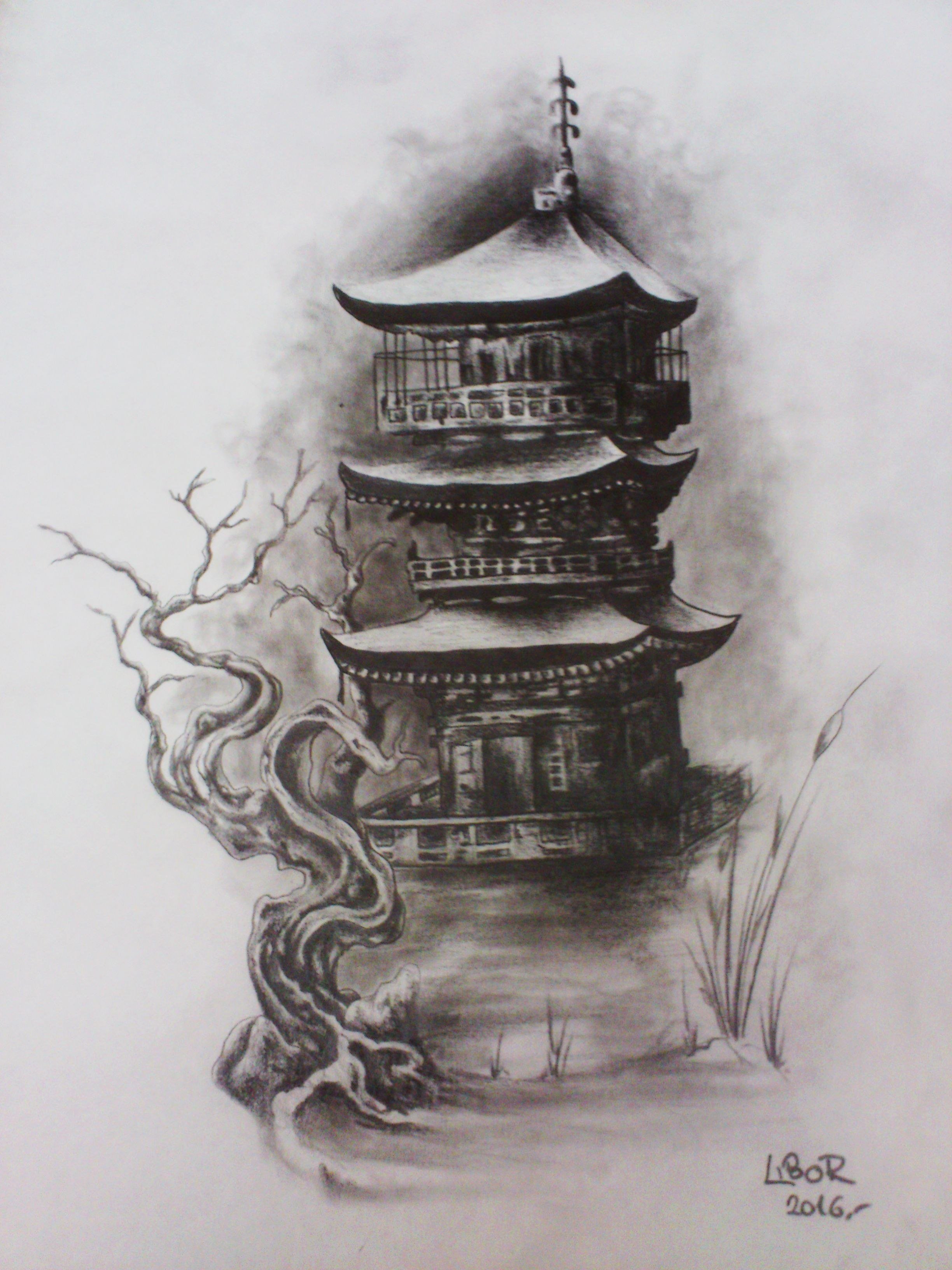 Японская пагода эскиз тату