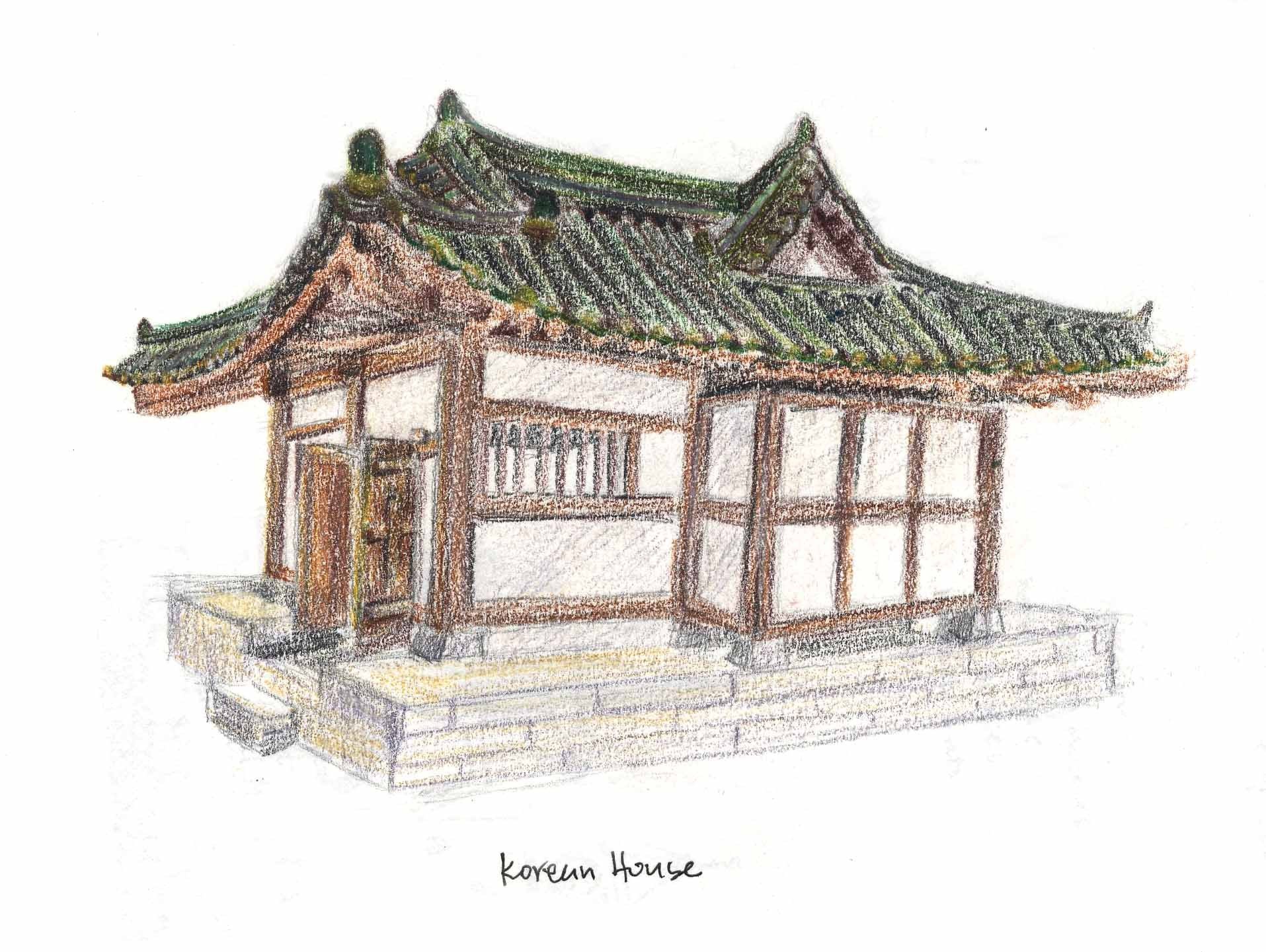 Японский дом карандашом для детей