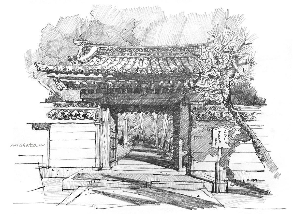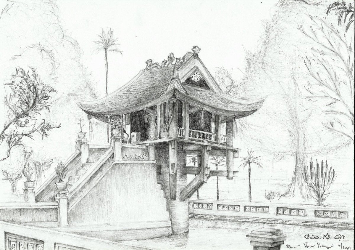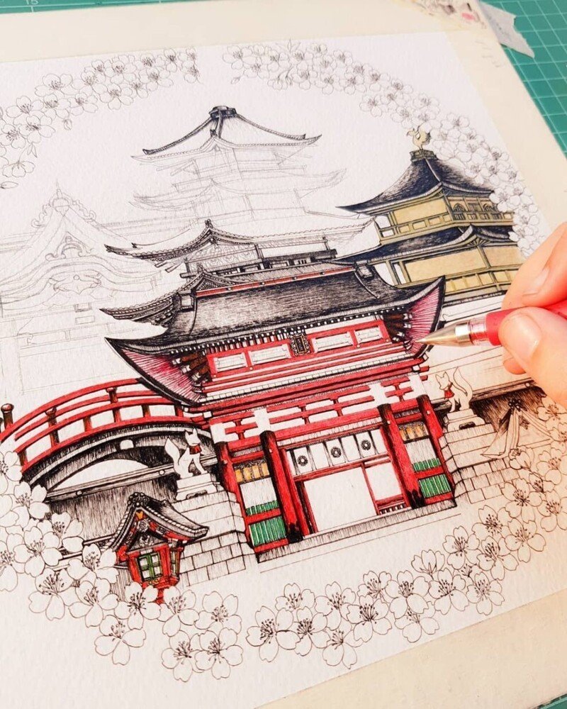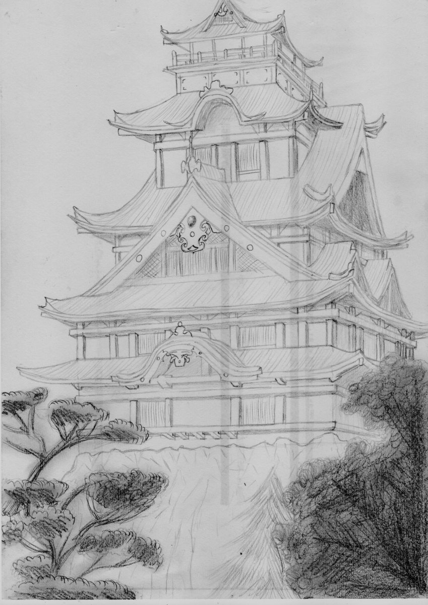 Японский храм карандашом