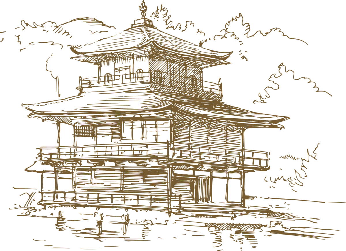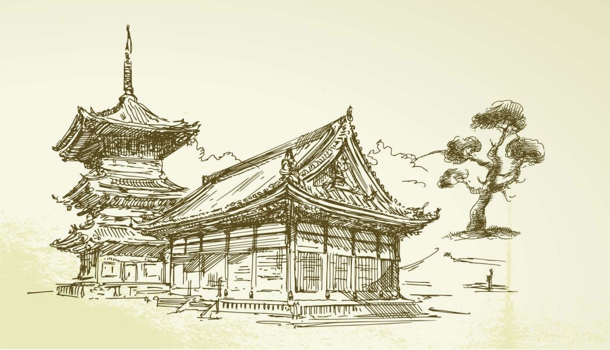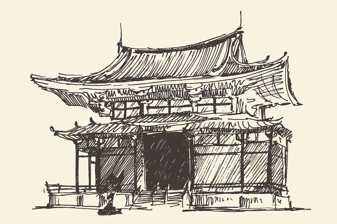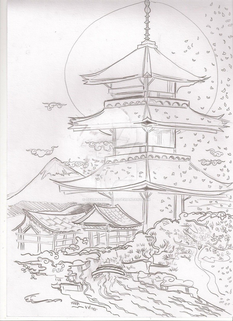 Японский храм рисунок