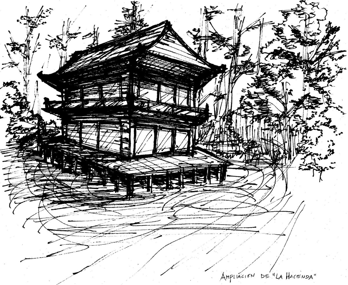Японский домик рисунок