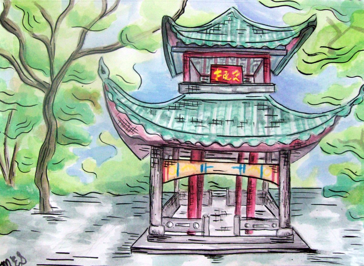 Китайский домик рисунок