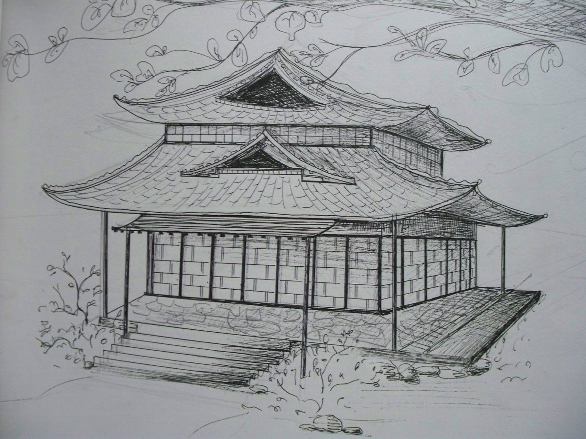 Японский домик карандашом