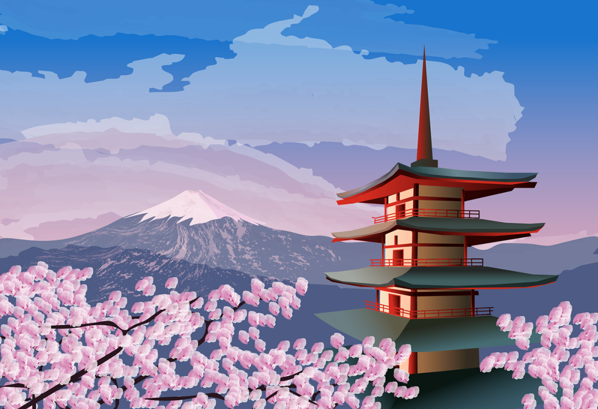 Храм пагода в Японии рисунок