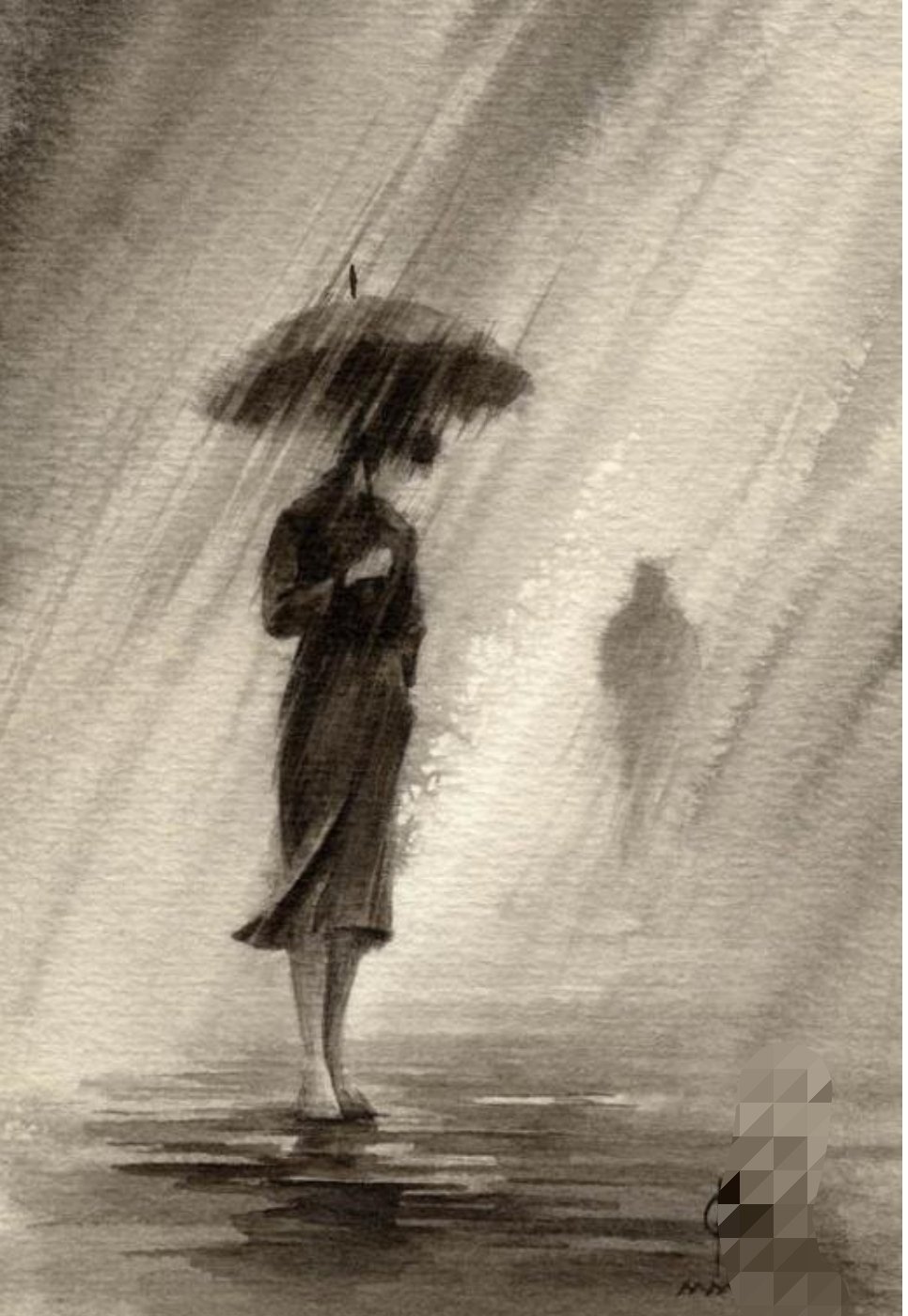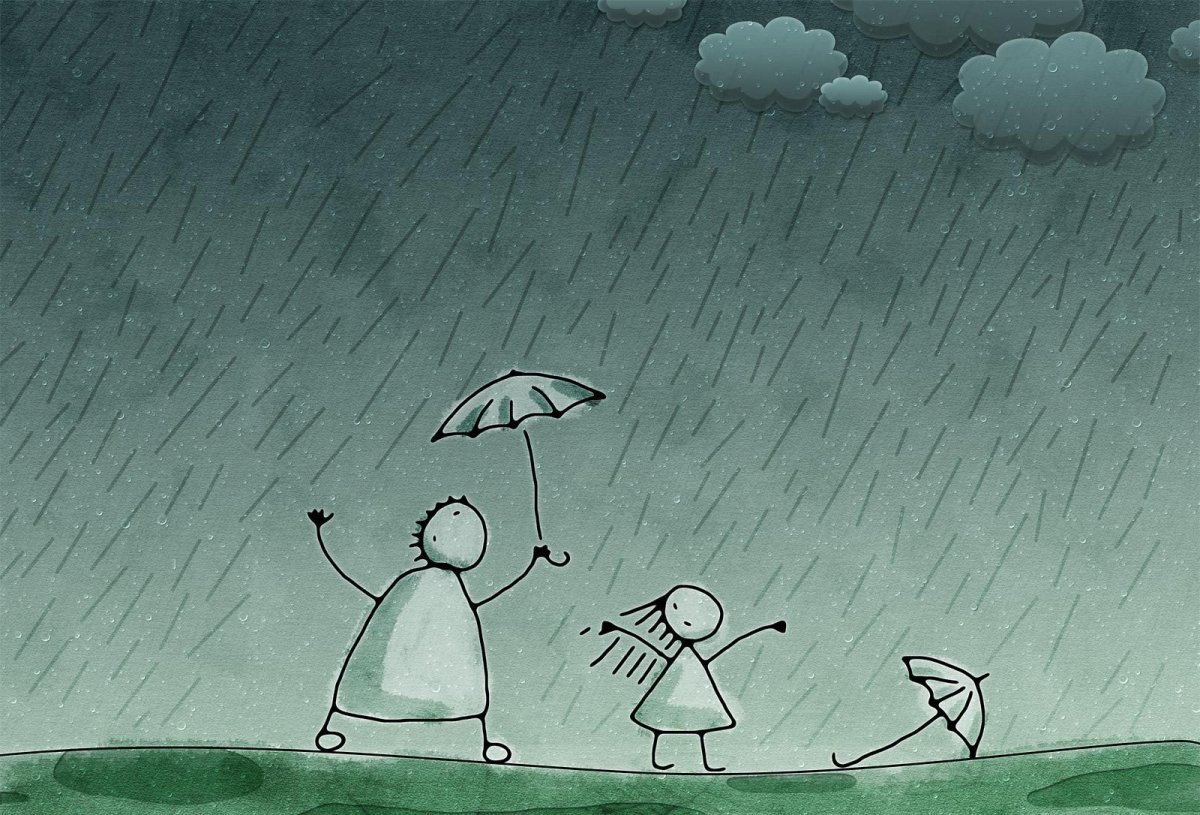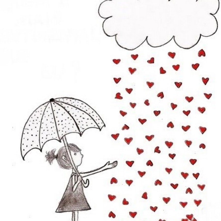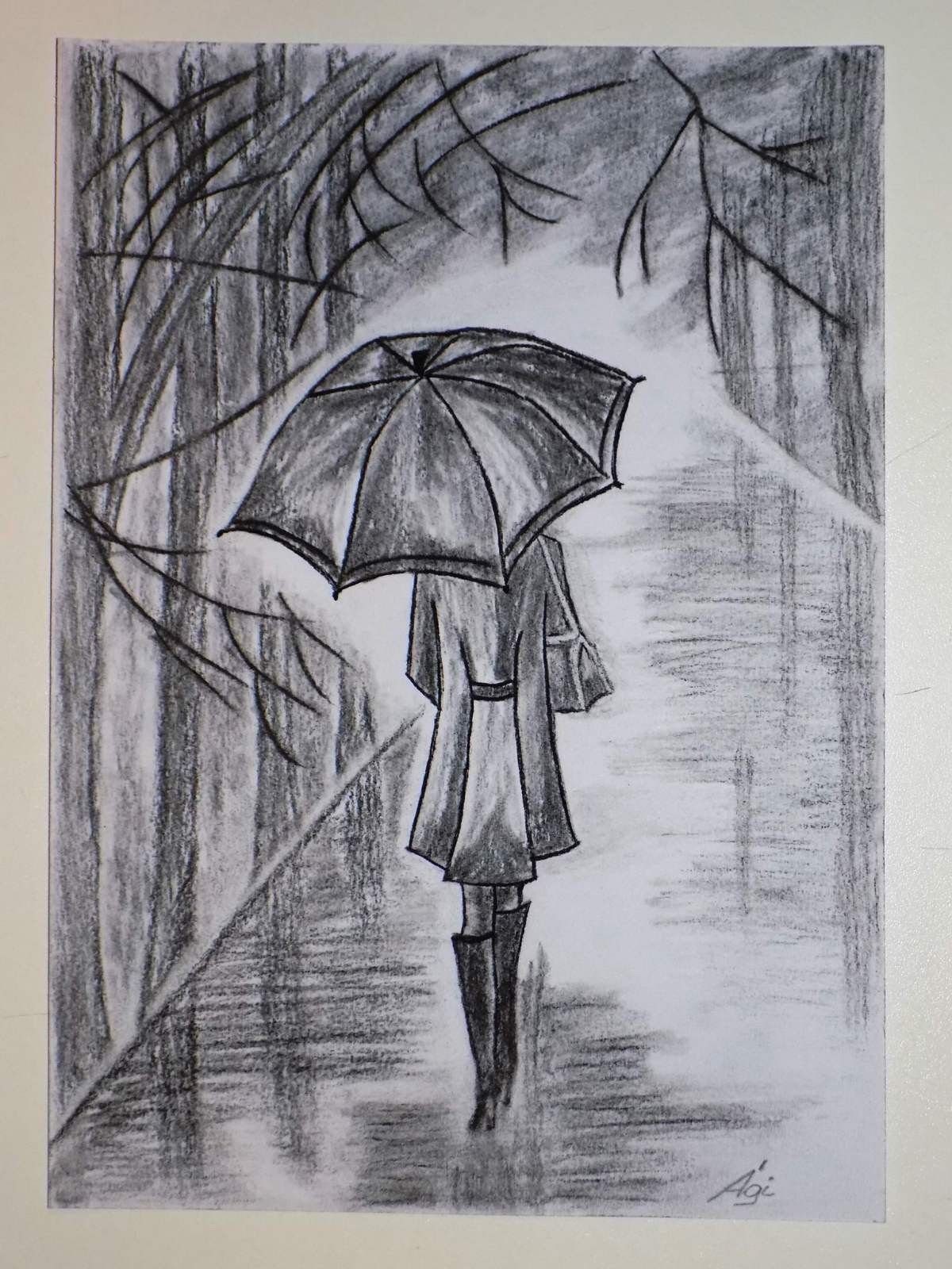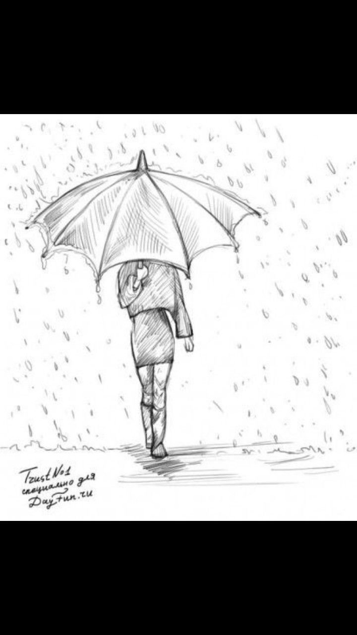 Девушка с зонтом под дождем рисунок