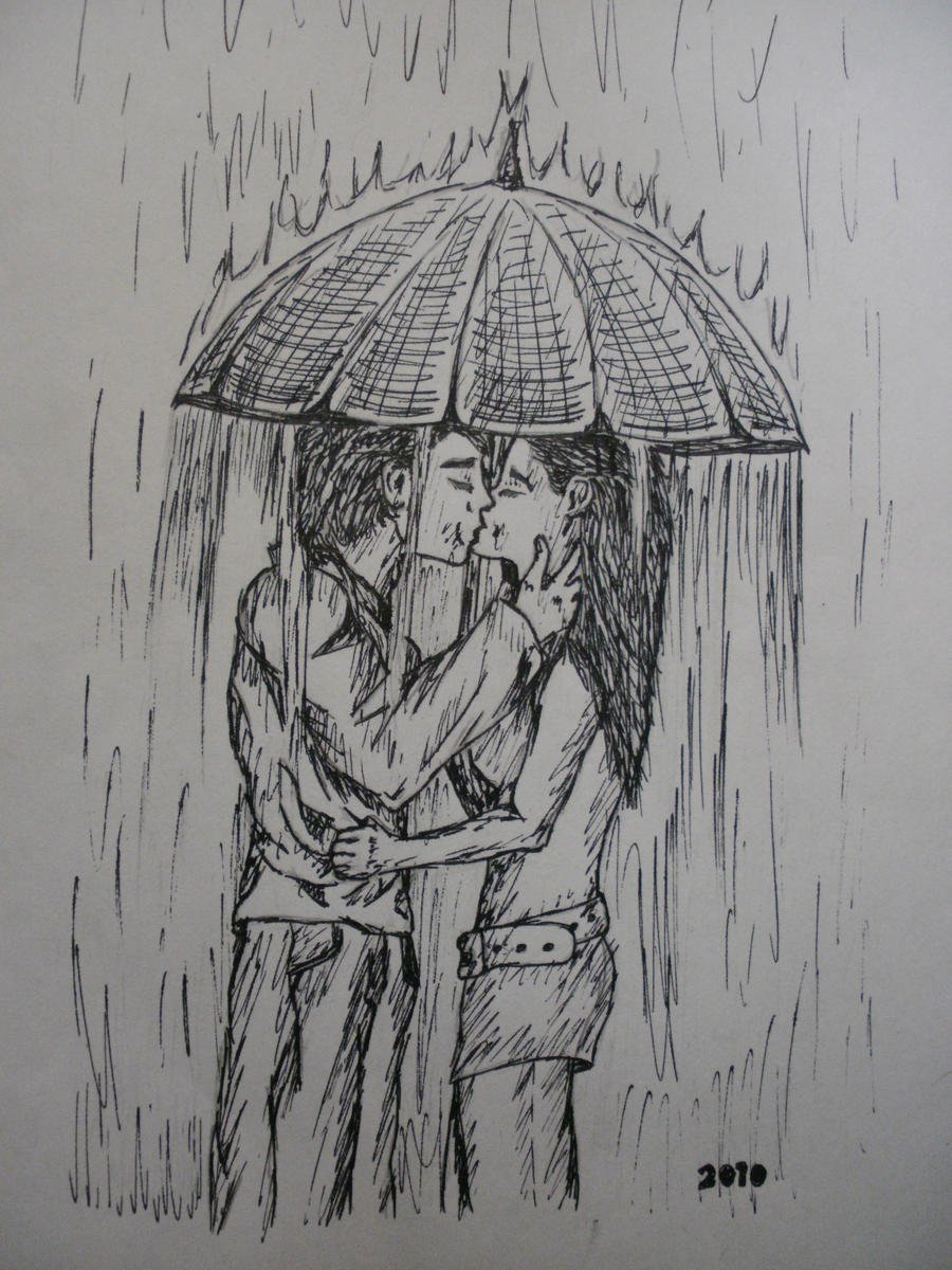 Дети под дождем рисунок карандашом