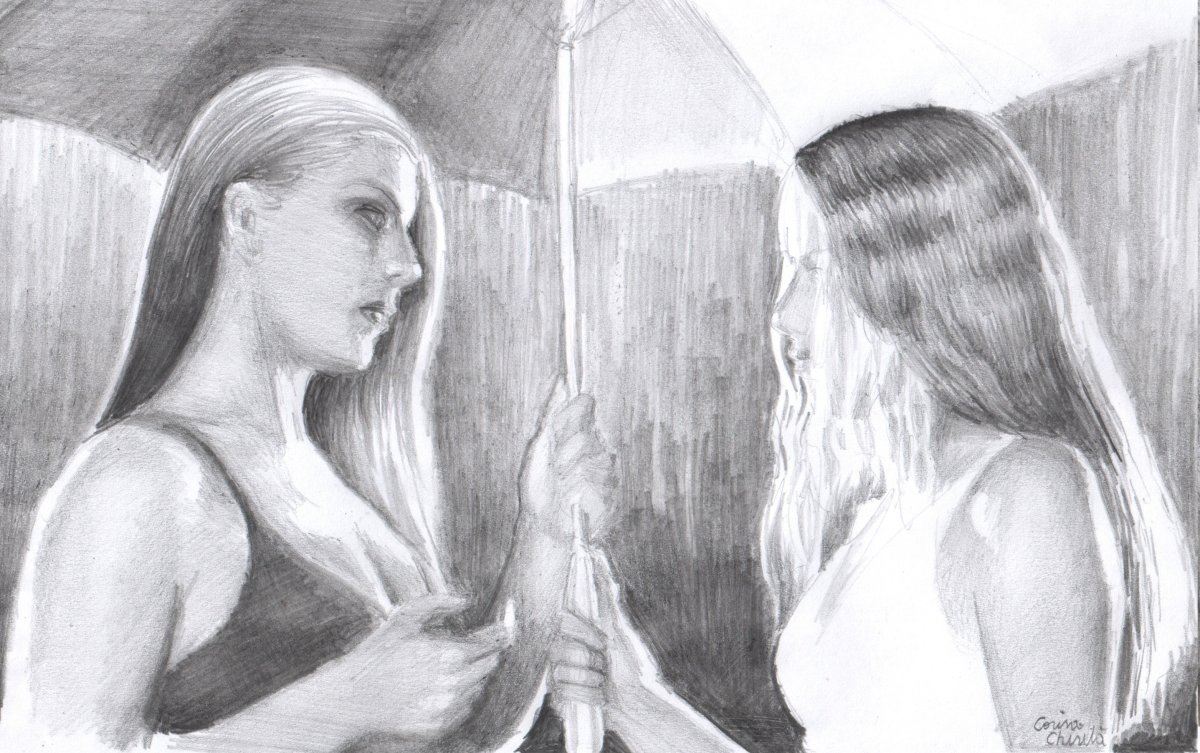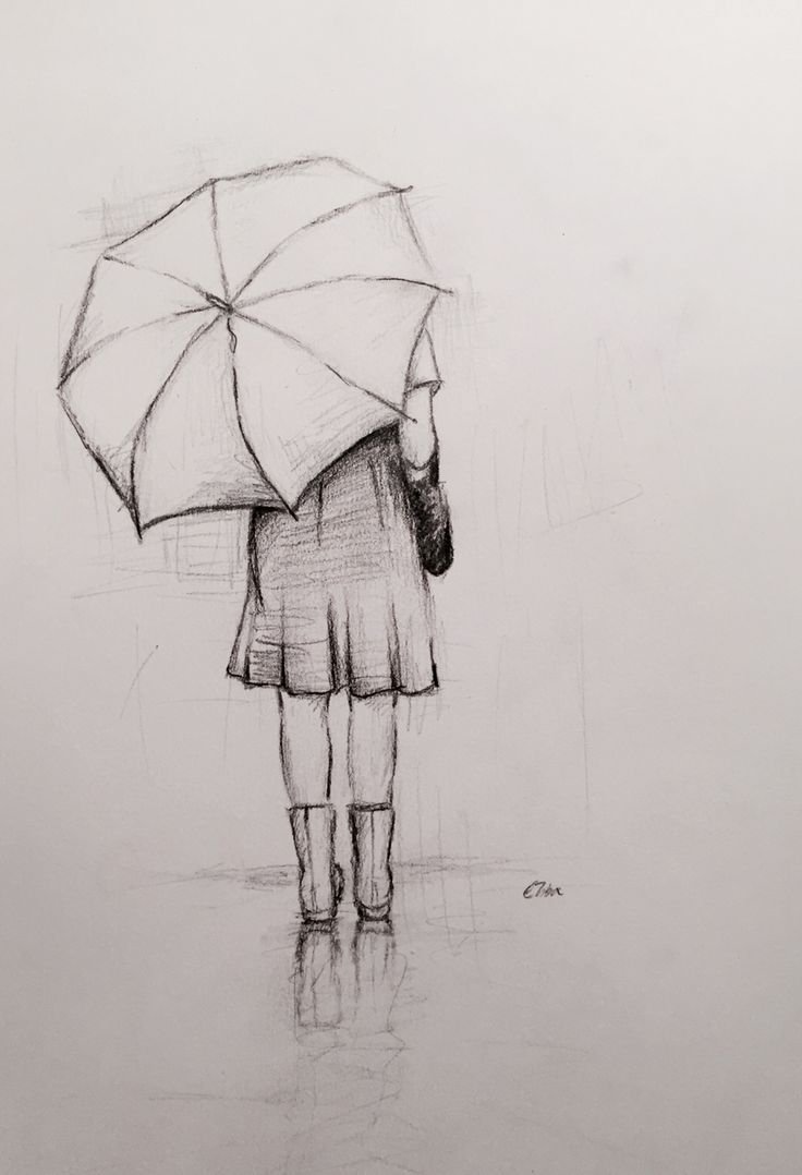 Девушка с зонтом рисунок карандашом