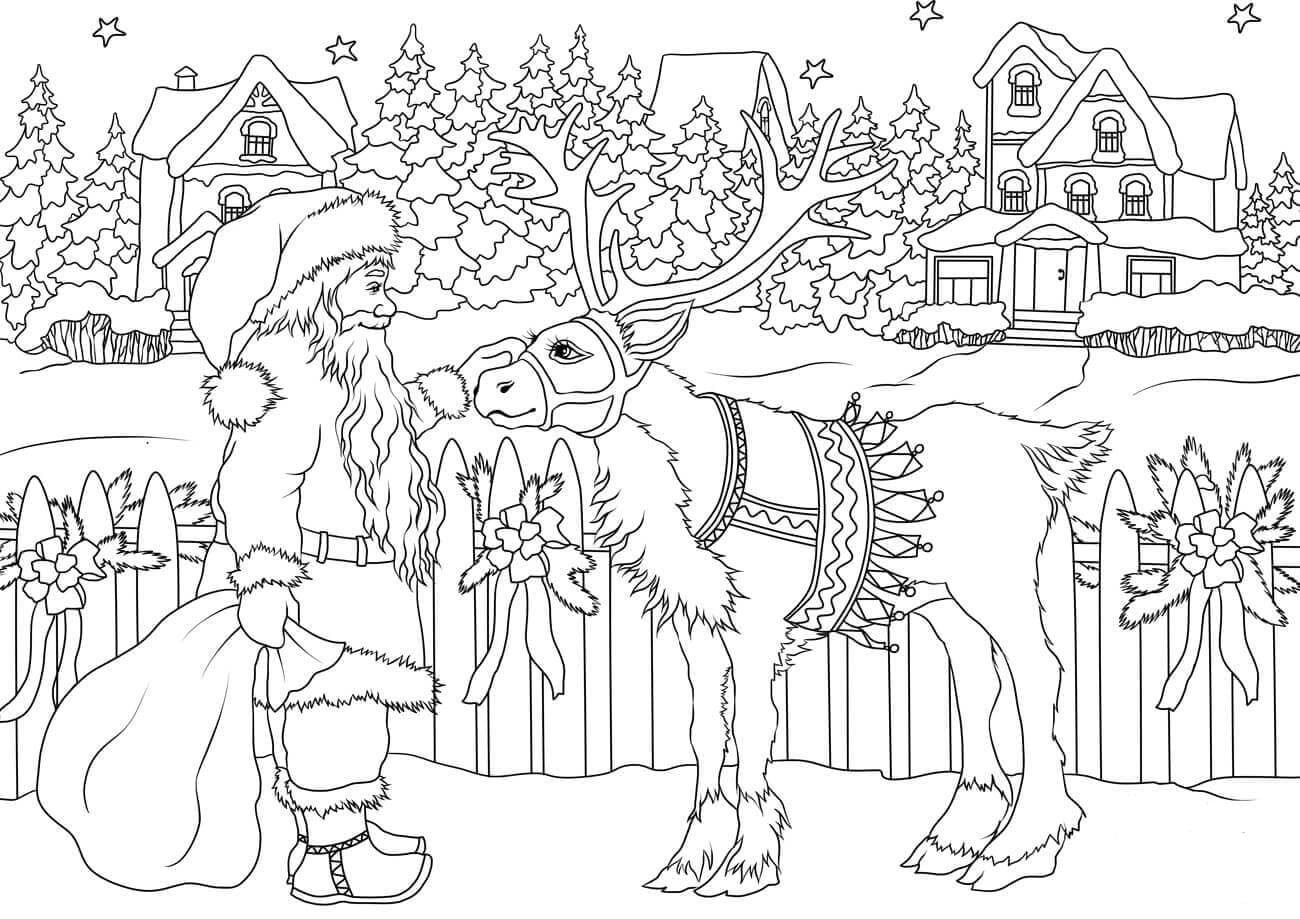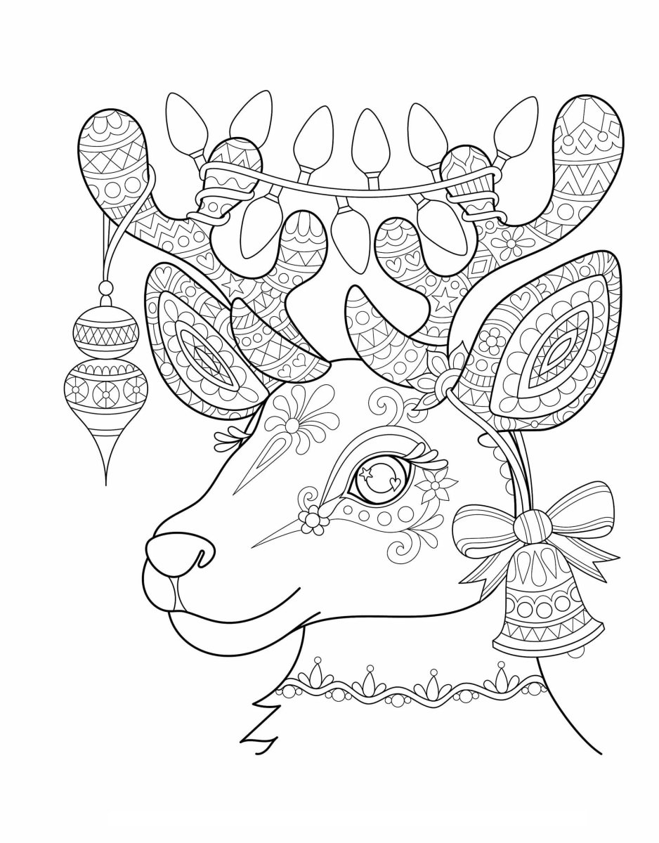 Раскраска олень новогодний