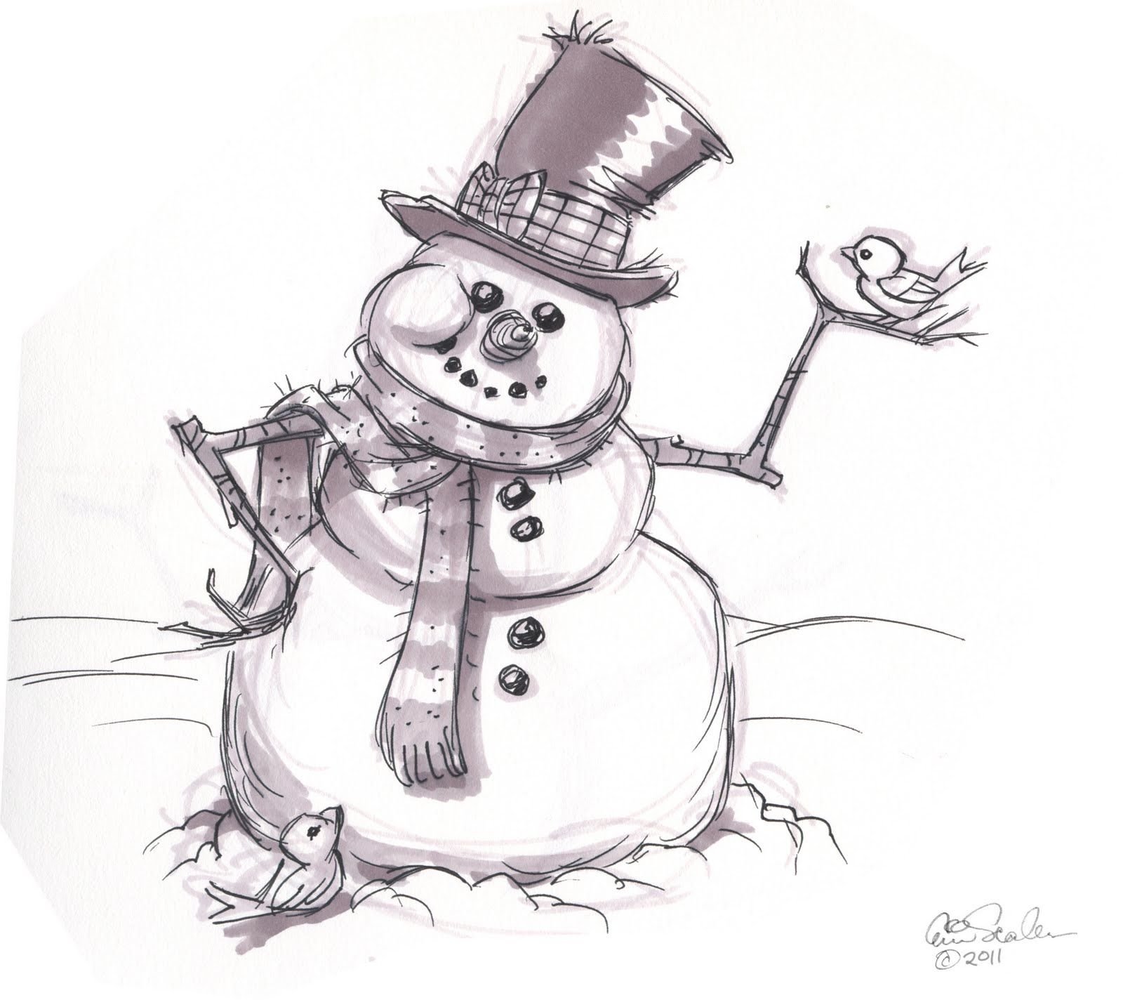 Снеговик рисунок карандашом