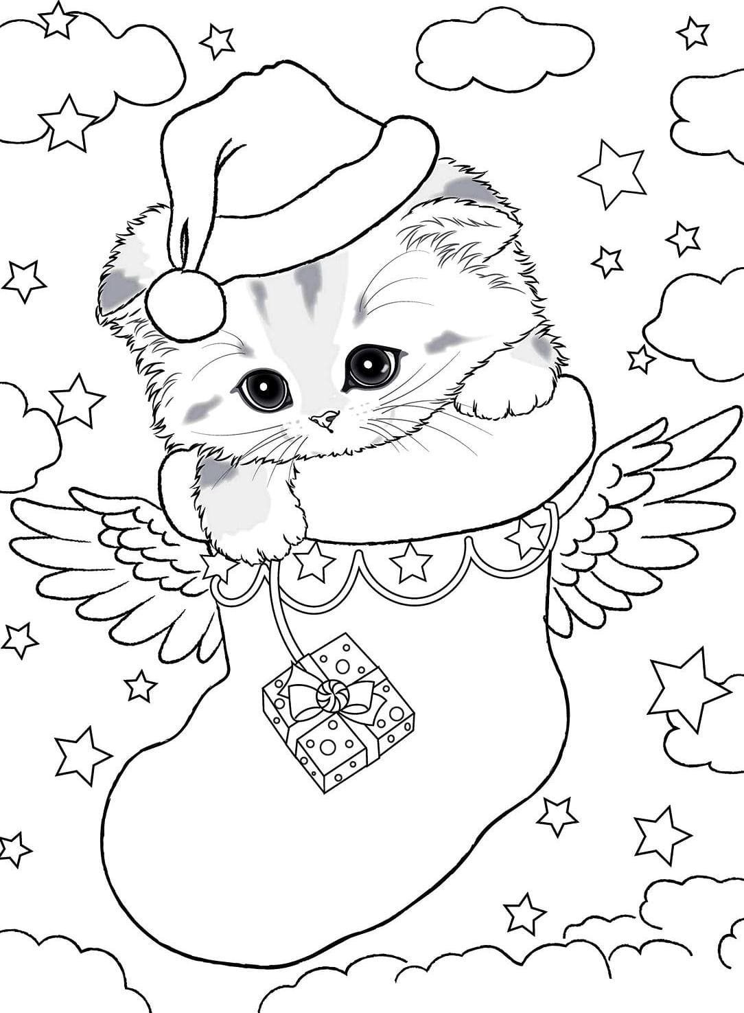 Раскраски новогодние котята